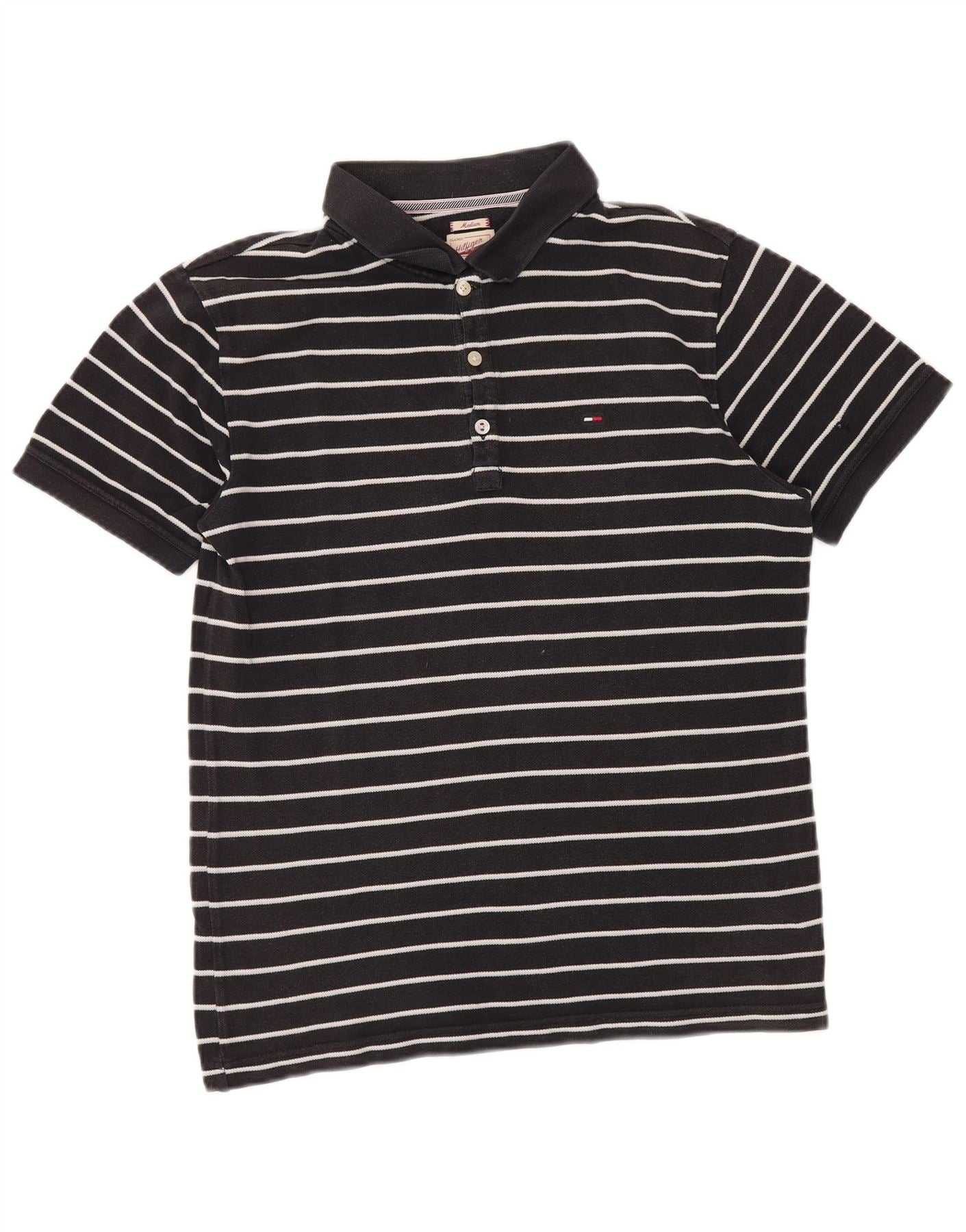 TOMMY HILFIGER Herren Poloshirt Mittelschwarz gestreift Baumwolle
