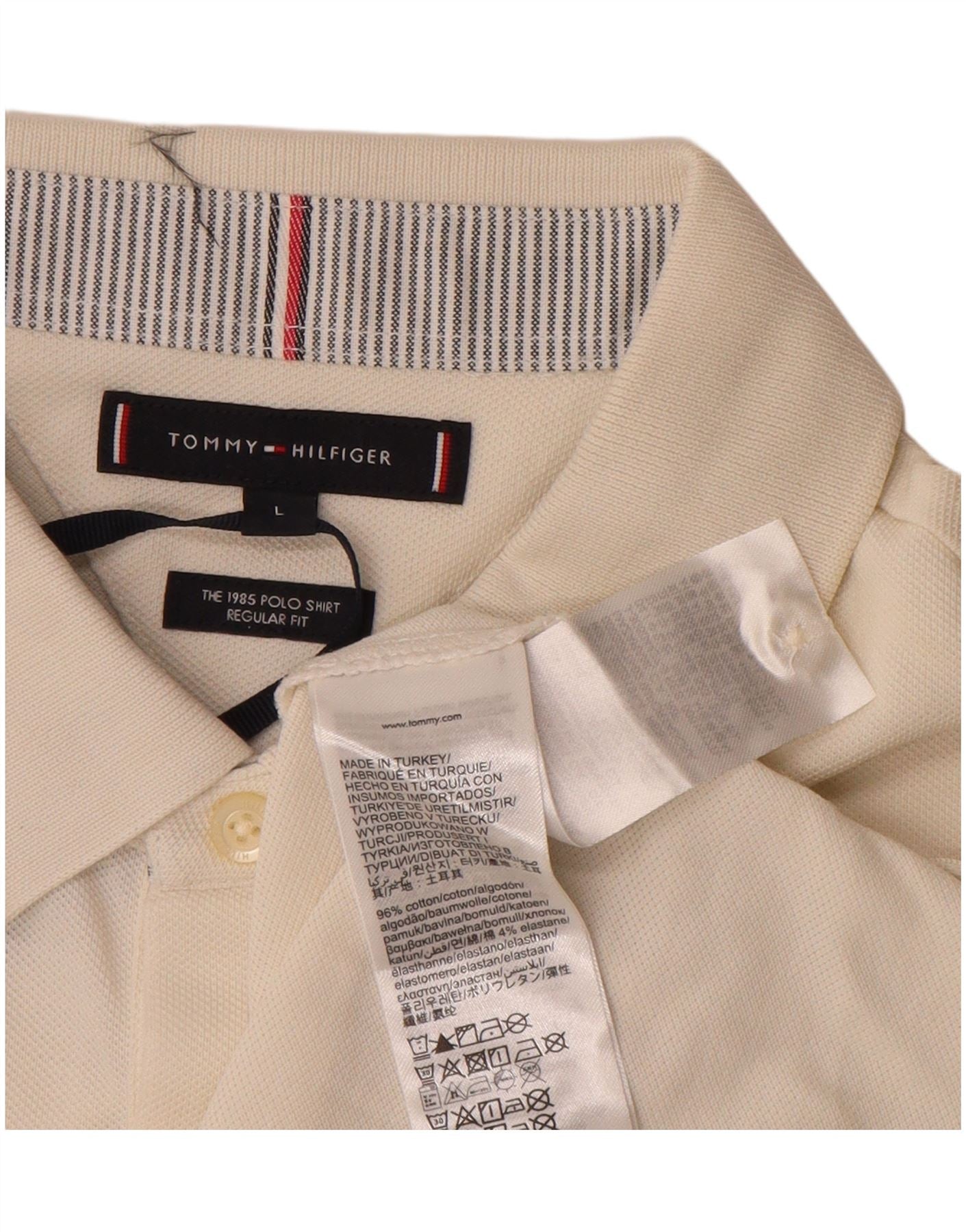 TOMMY HILFIGER Herren-Poloshirt mit normaler Passform, langärmelig, groß, gebrochenes Weiß