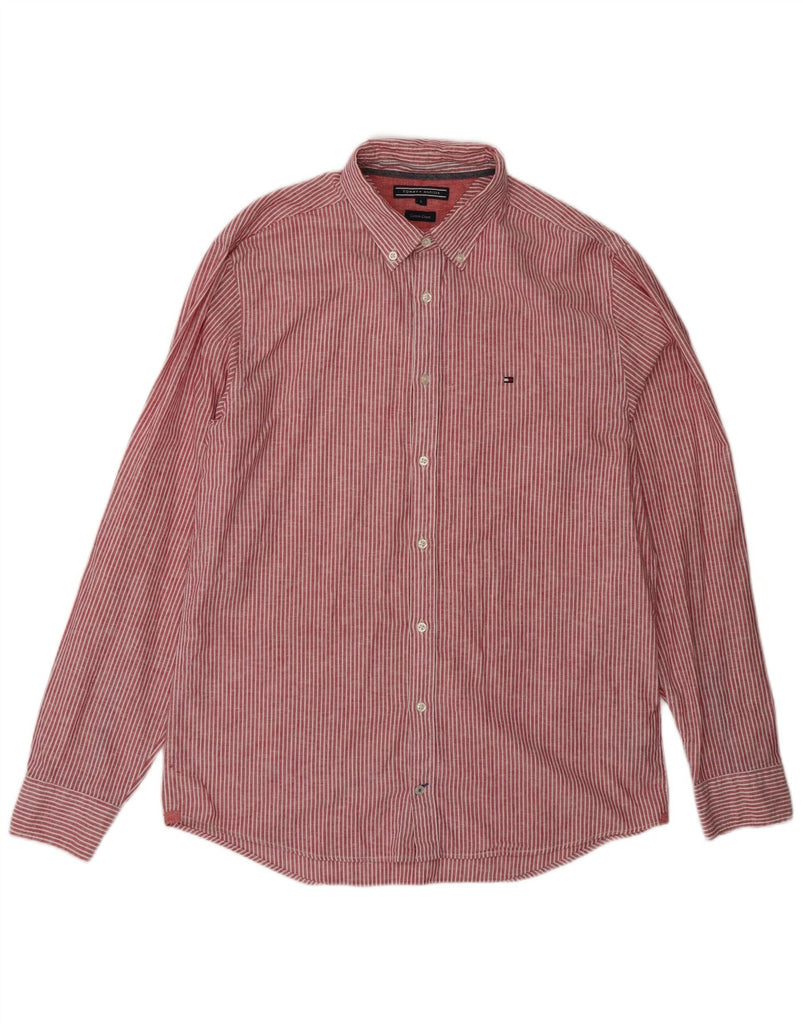 TOMMY HILFIGER Herren-Hemd mit normaler Passform, große rote Nadelstreifen-Baumwolle