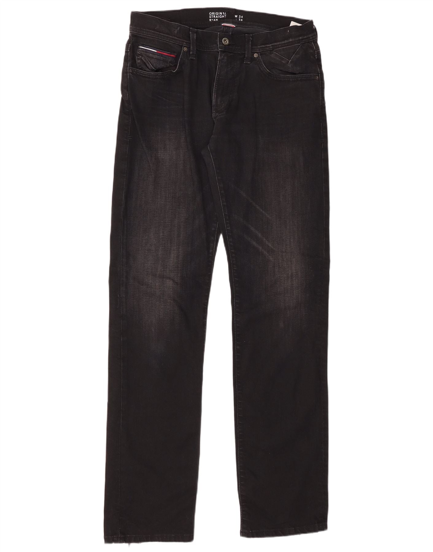 TOMMY HILFIGER Herren Ryan Original Fit Straight Jeans W34 L36 Schwarze Baumwolle