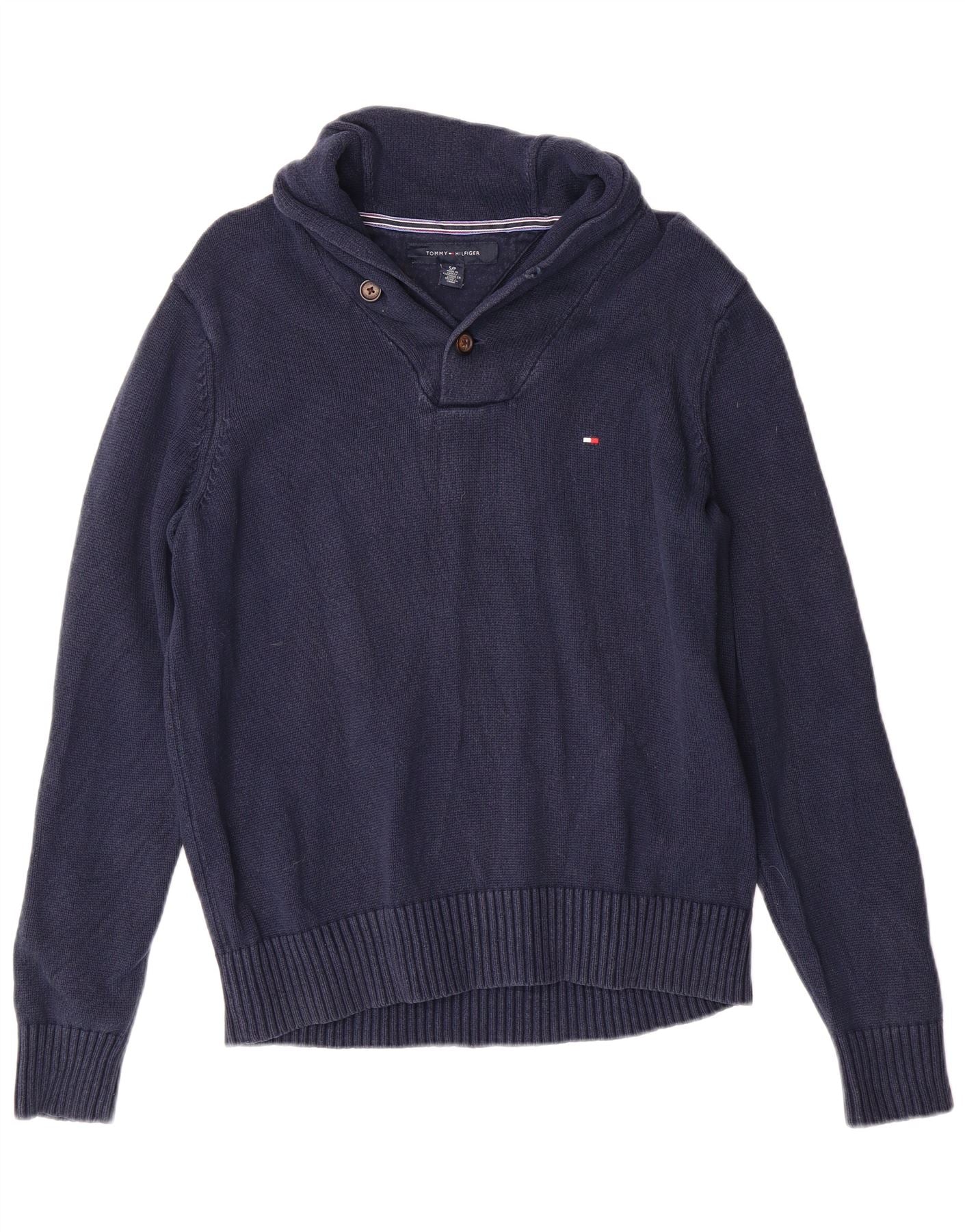 TOMMY HILFIGER Herren-Pullover mit Schalkragen, Größe S, marineblaue Baumwolle