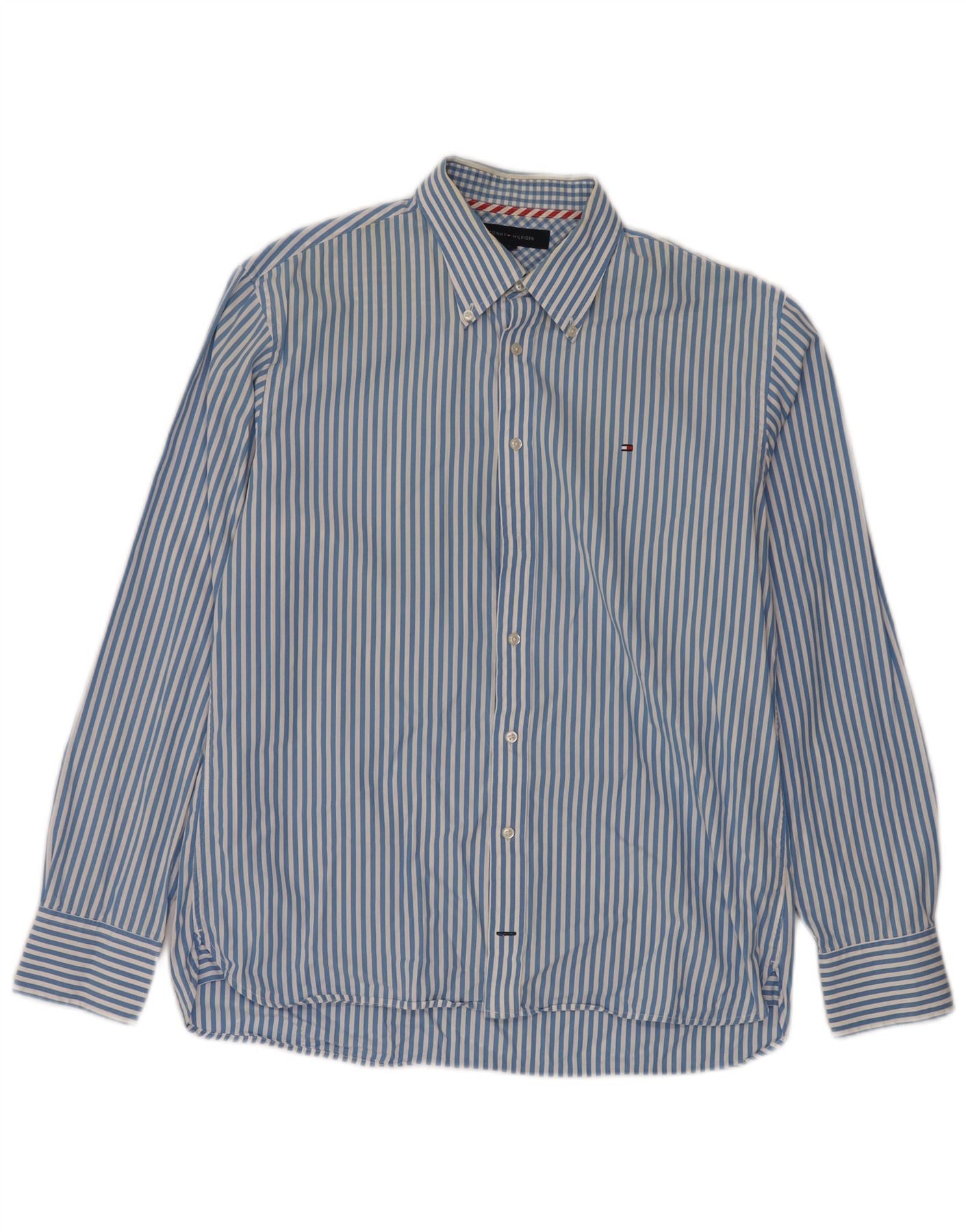 TOMMY HILFIGER Herrenhemd Große blau gestreifte Baumwolle