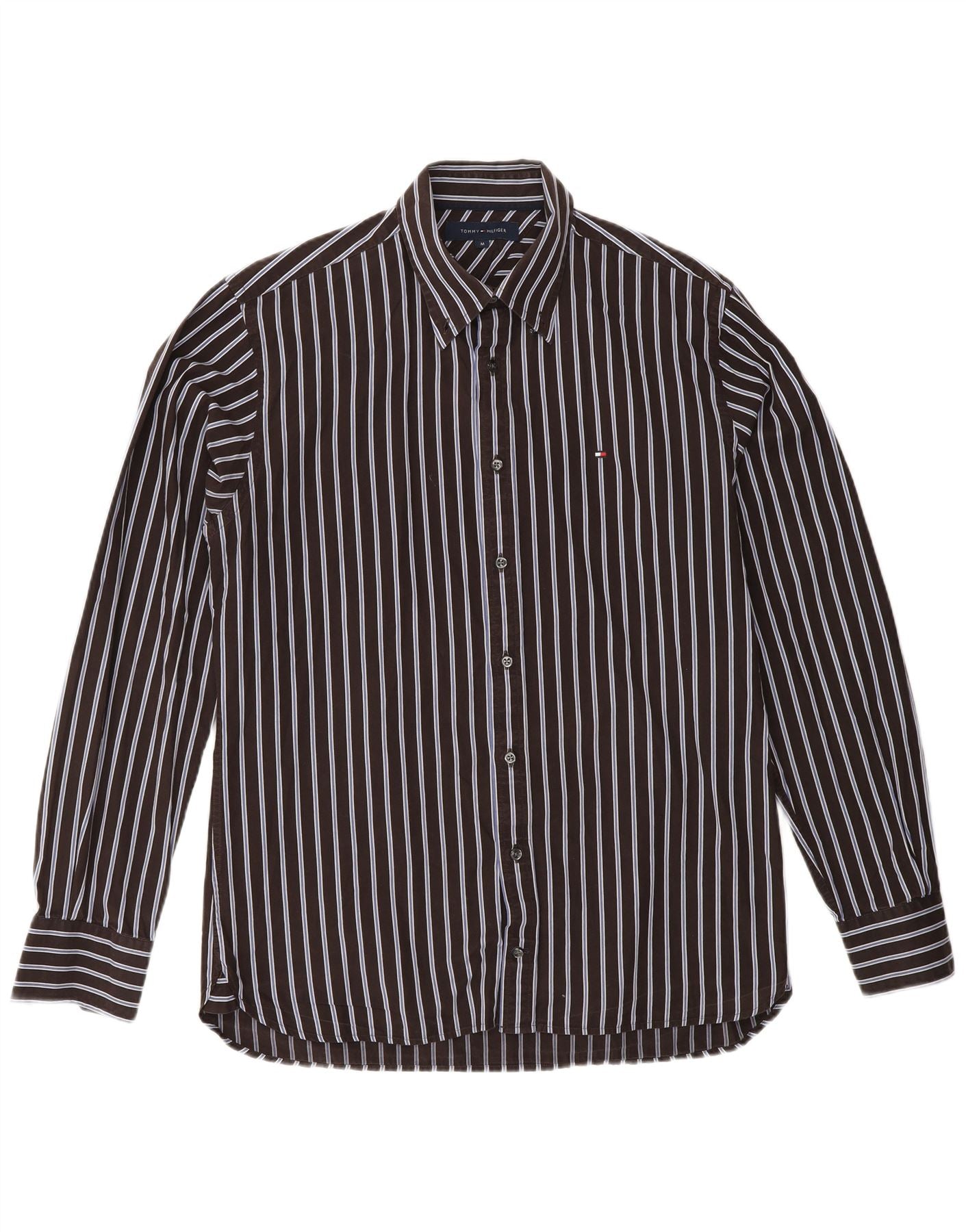 TOMMY HILFIGER Herrenhemd mittelbraun gestreift aus Baumwolle