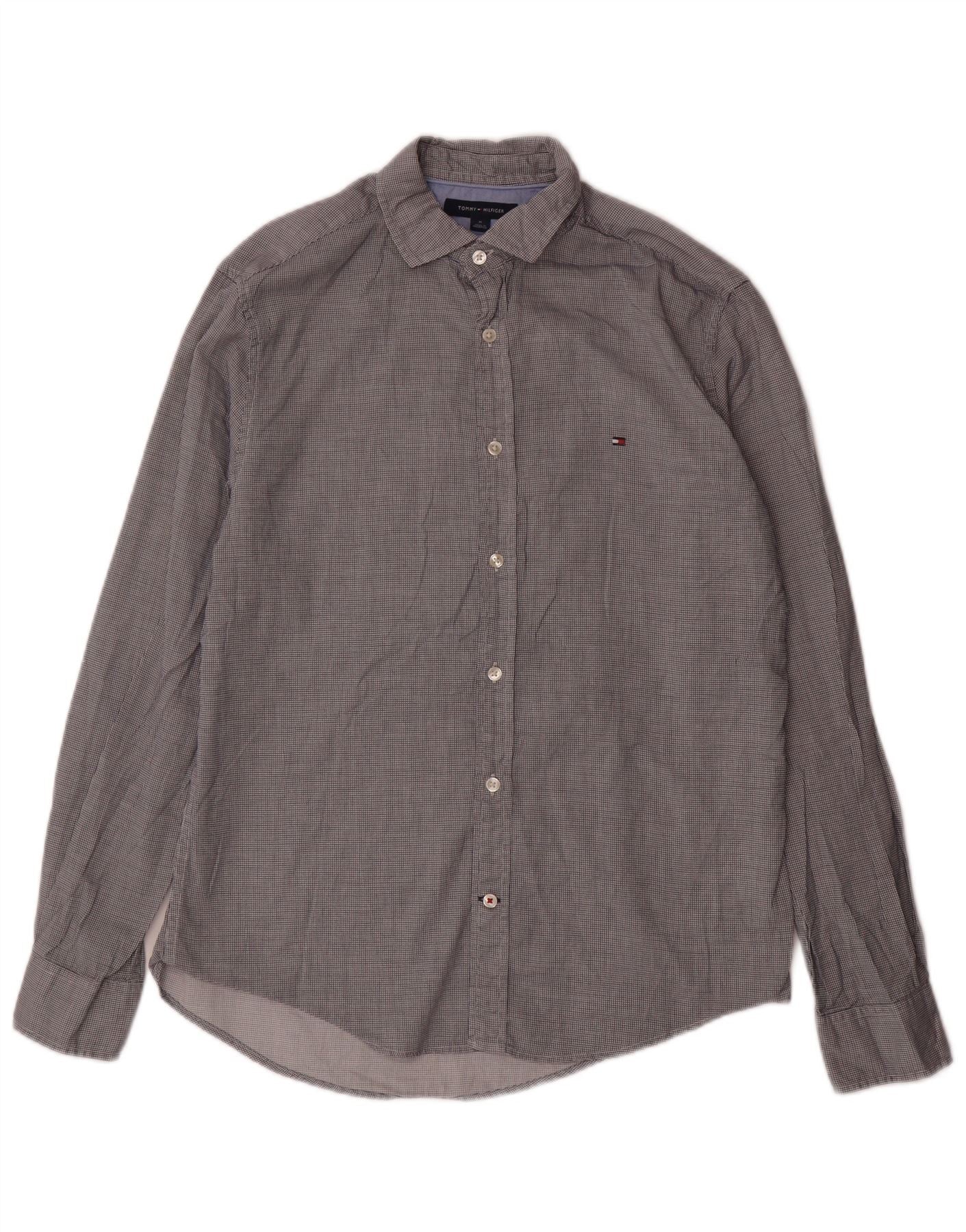 TOMMY HILFIGER Herrenhemd mittelgrau karierte Baumwolle