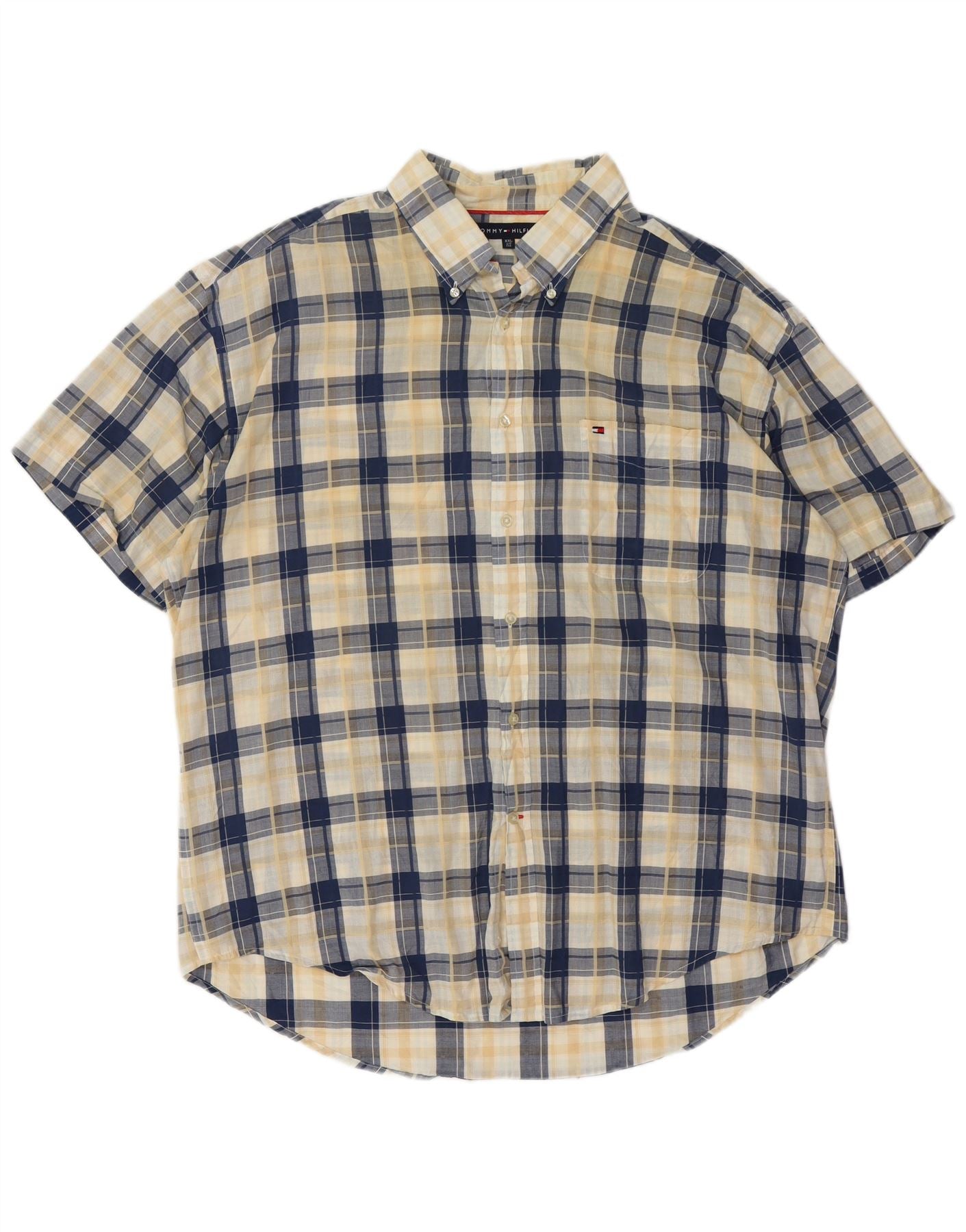 TOMMY HILFIGER Herren Kurzarmhemd 2XL Marineblau kariert Baumwolle