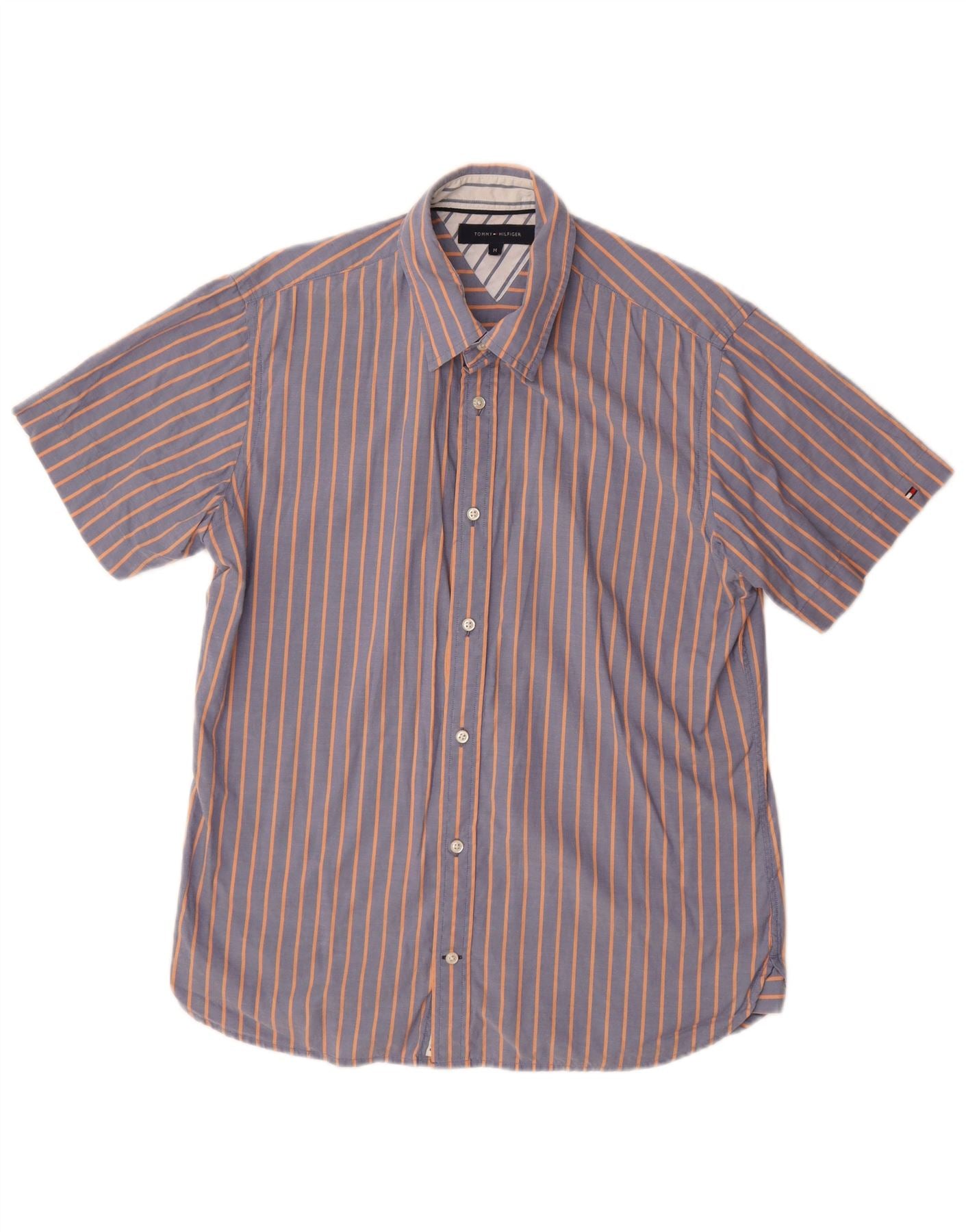 TOMMY HILFIGER Herren Kurzarmhemd mittelblau gestreift aus Baumwolle