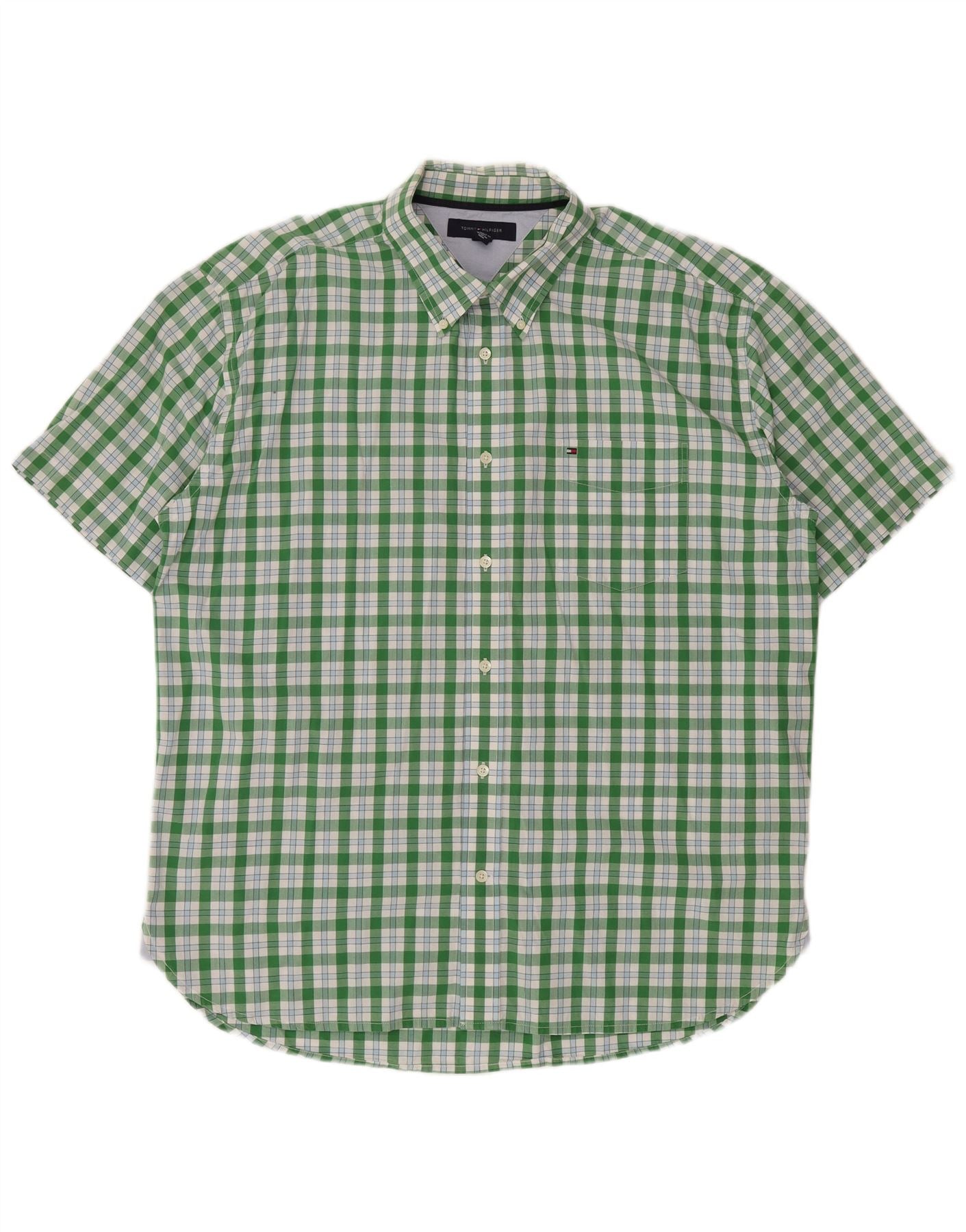 Tommy Hilfiger Herren Kurzarmhemd XL grün kariert Baumwolle