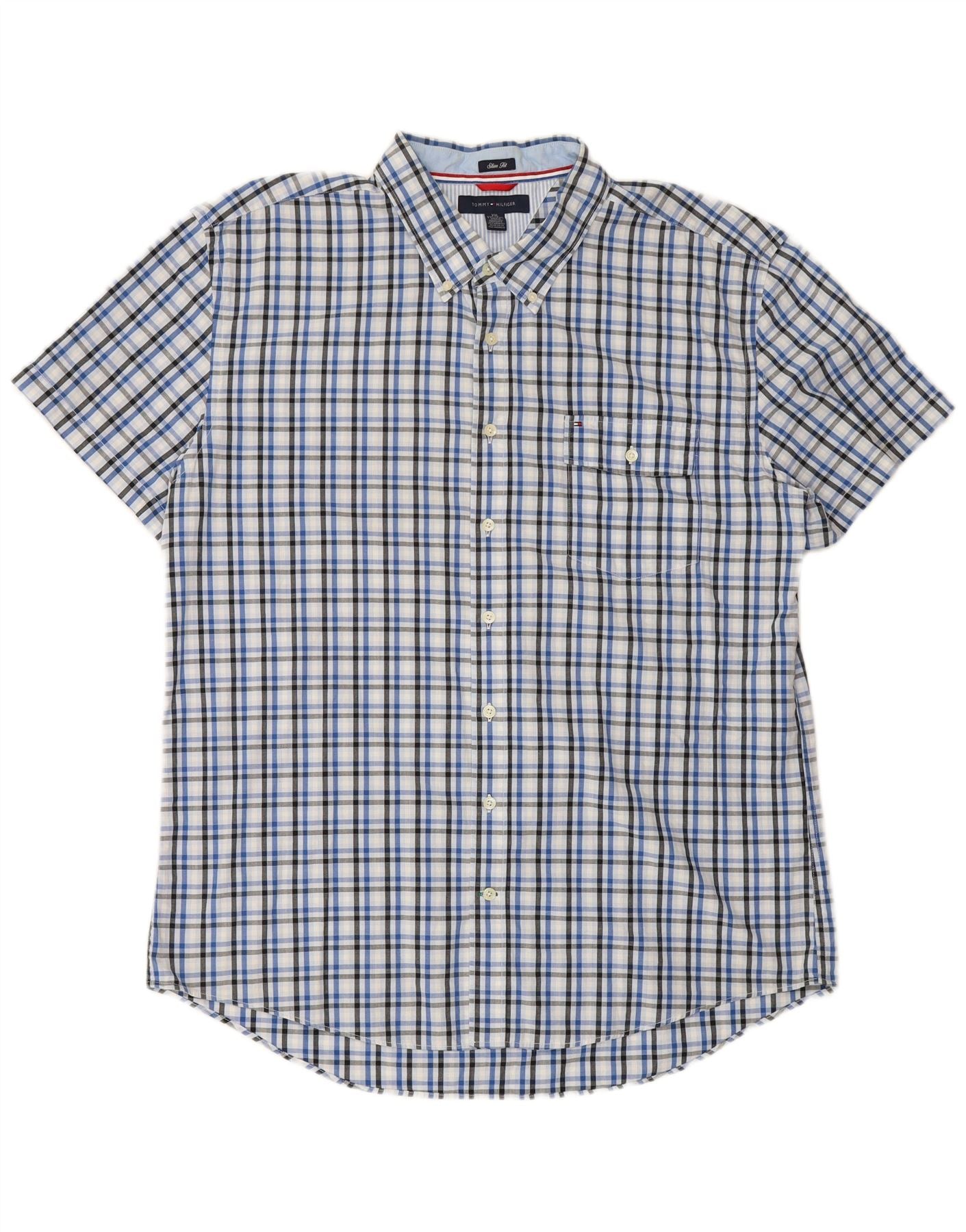 TOMMY HILFIGER Herren Kurzarm Slim Fit Hemd 2XL Blau kariert Baumwolle