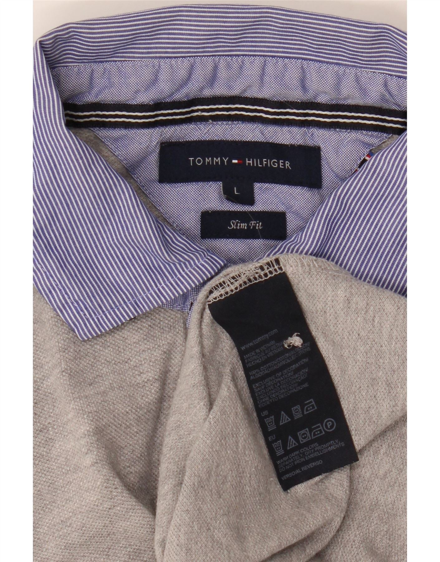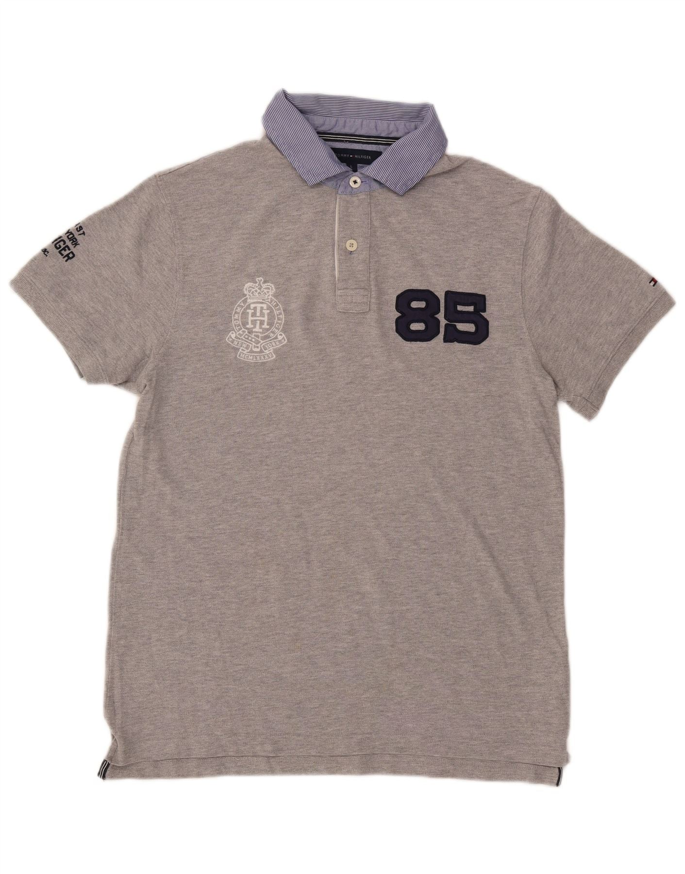 TOMMY HILFIGER Herren Slim Fit Grafik-Poloshirt, große graue Baumwolle