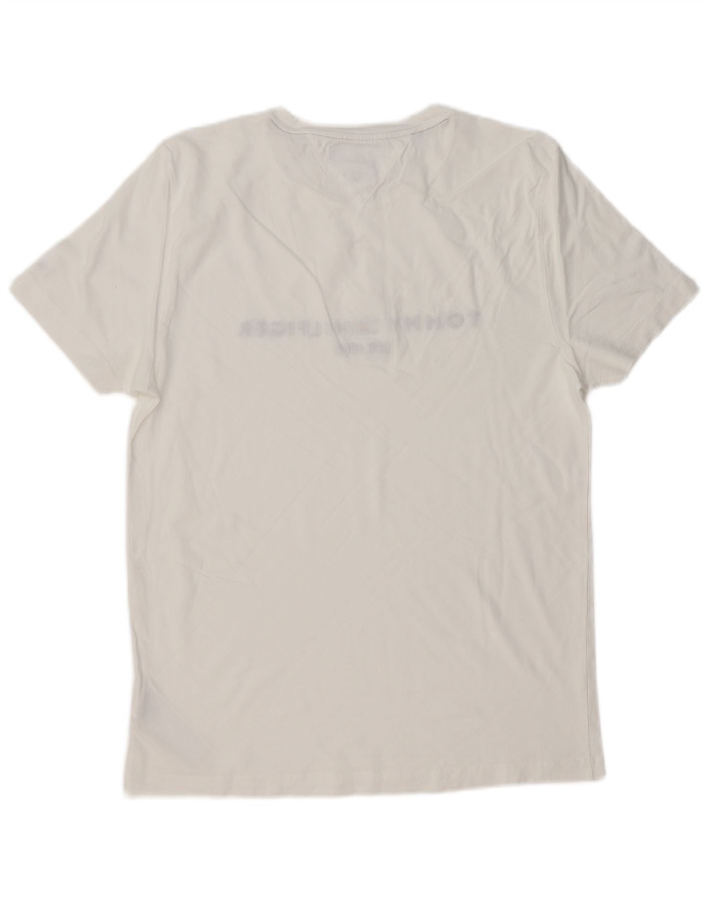TOMMY HILFIGER Herren Slim Fit Graphic T-Shirt Top Large Weiße Baumwolle