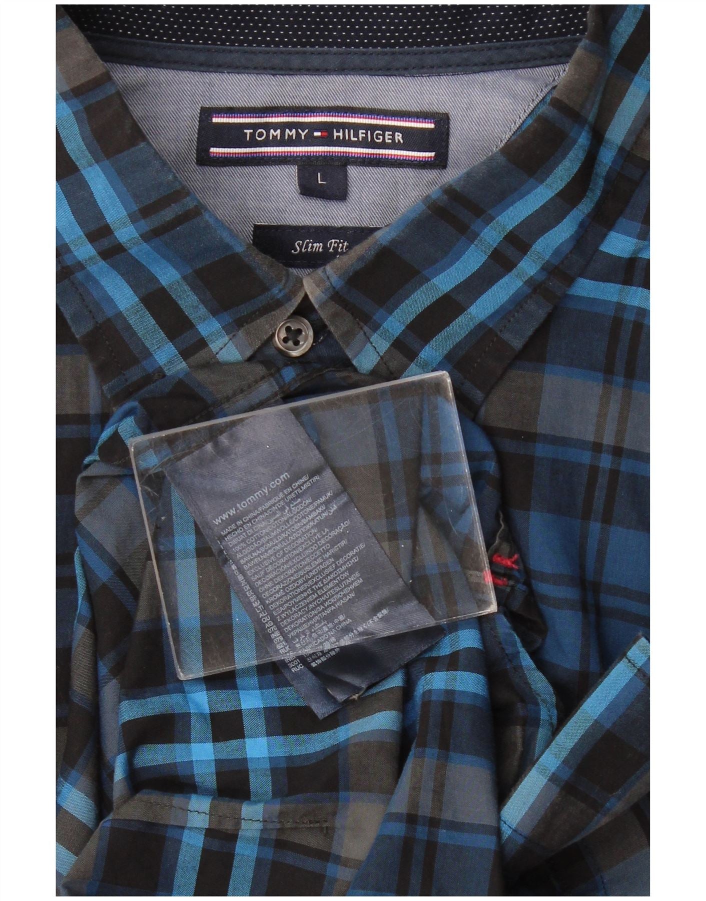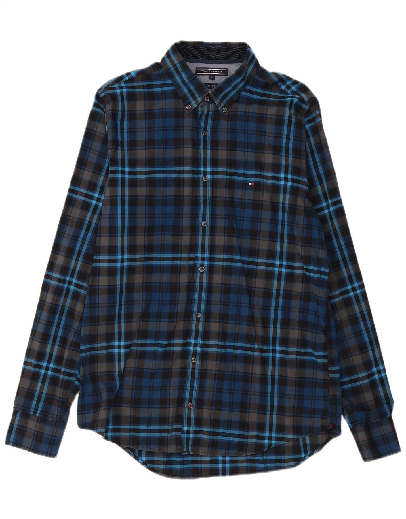 TOMMY HILFIGER Herren-Slim-Fit-Hemd, groß, marineblau, kariert, Baumwolle