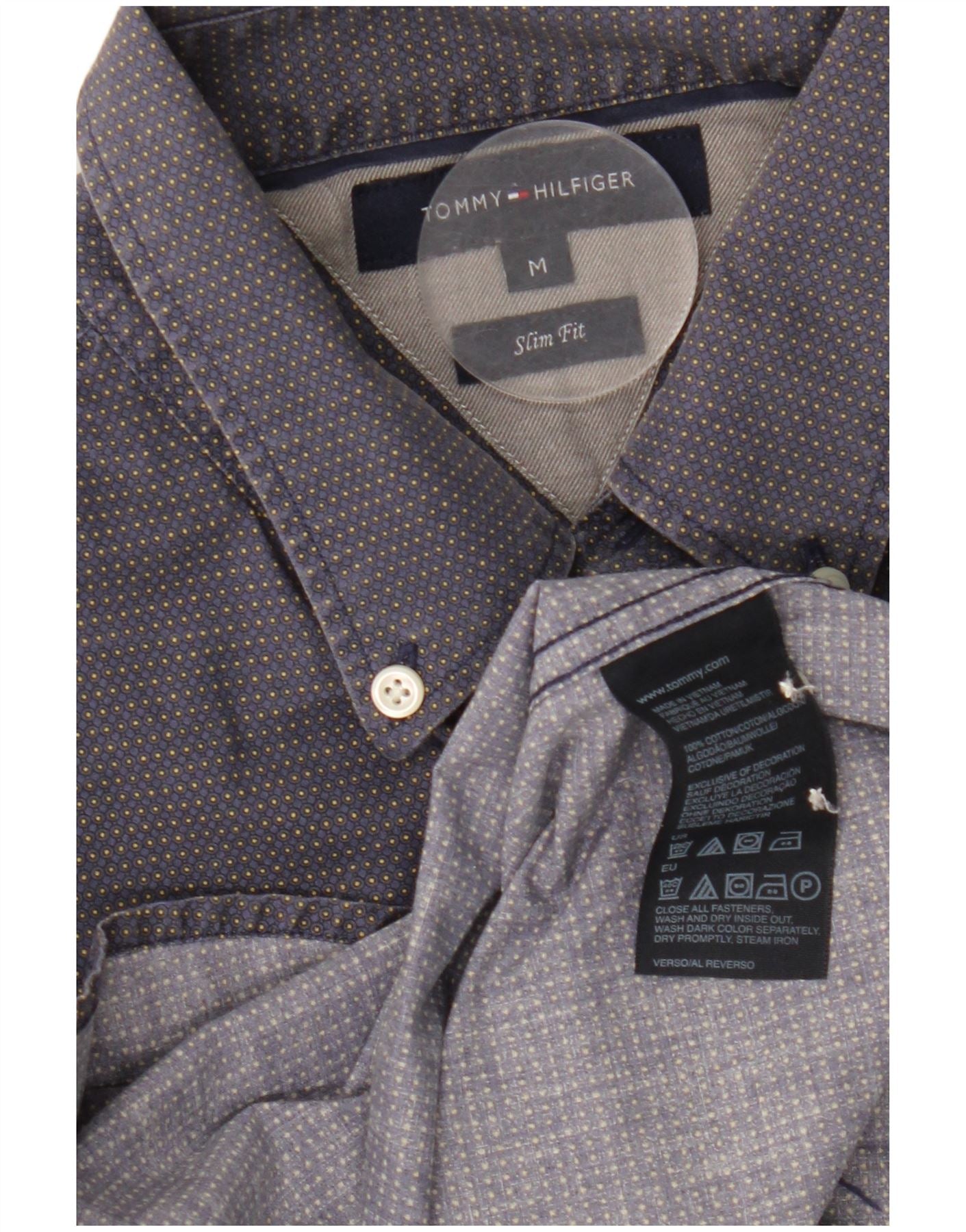 TOMMY HILFIGER Herren Slim Fit Hemd Mittelblau gepunktete Baumwolle