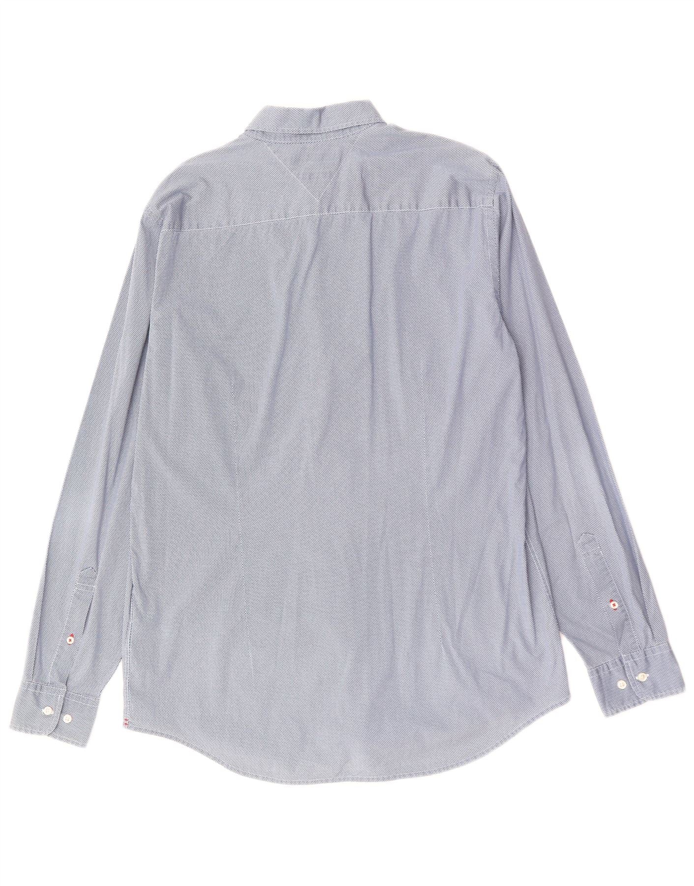 Tommy Hilfiger Herren-Slim-Fit-Hemd XL aus blau gepunkteter Baumwolle