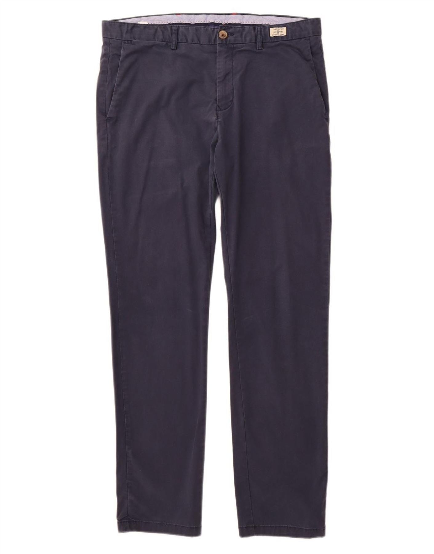 TOMMY HILFIGER Mens Straight Chino Trousers W36 L32 Navy Blue Cotton