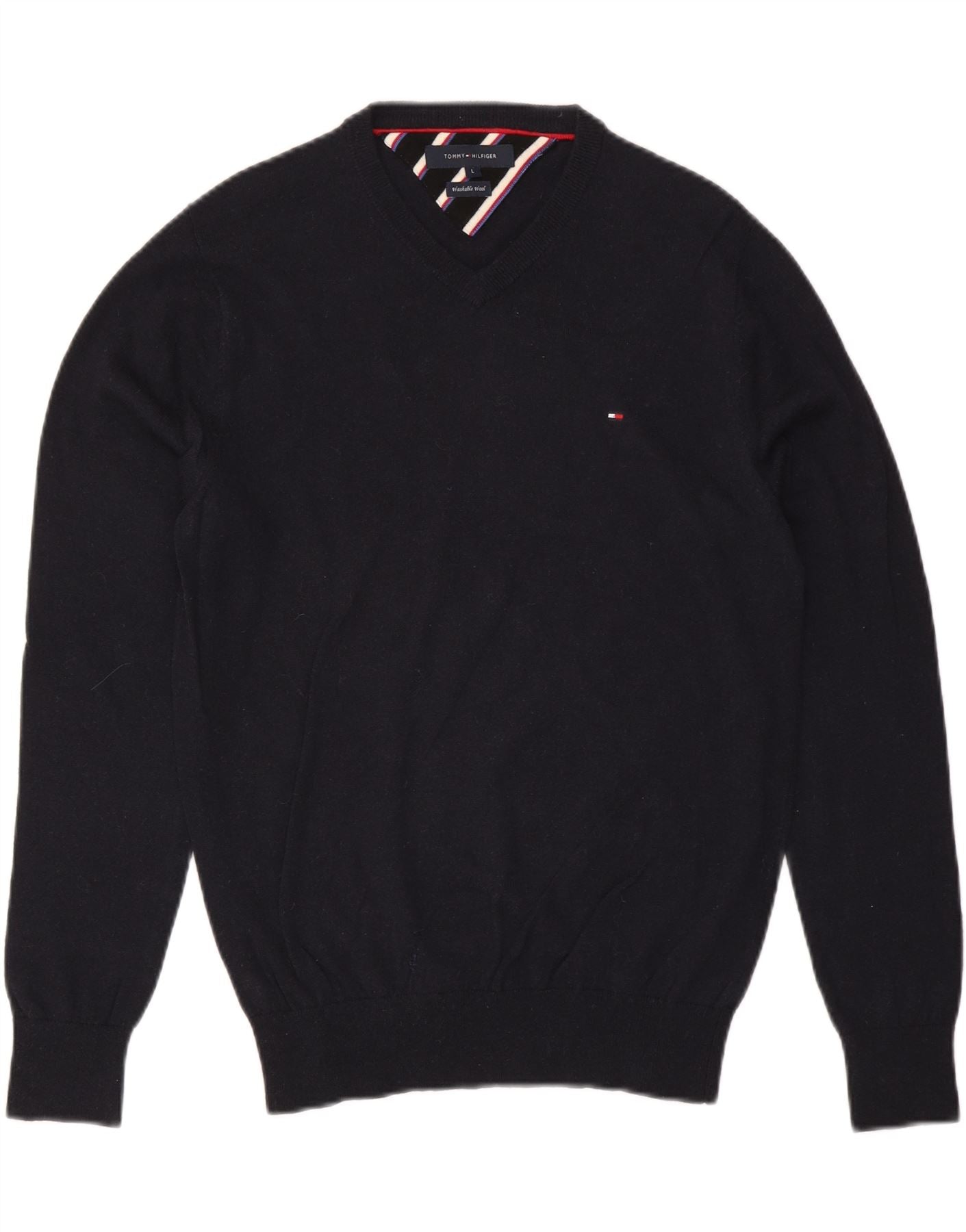 TOMMY HILFIGER Herren-Pullover mit V-Ausschnitt, große marineblaue Wolle