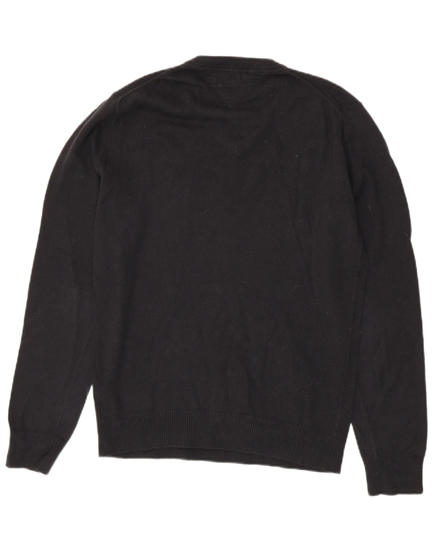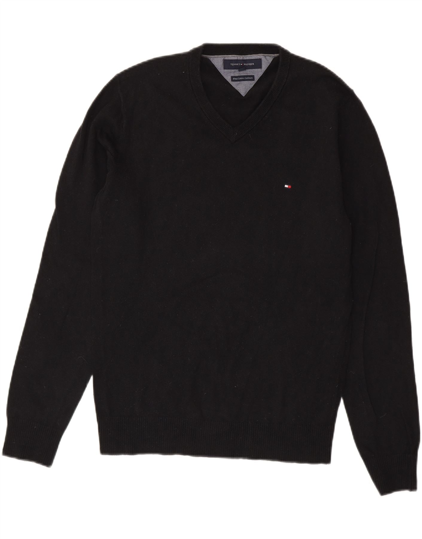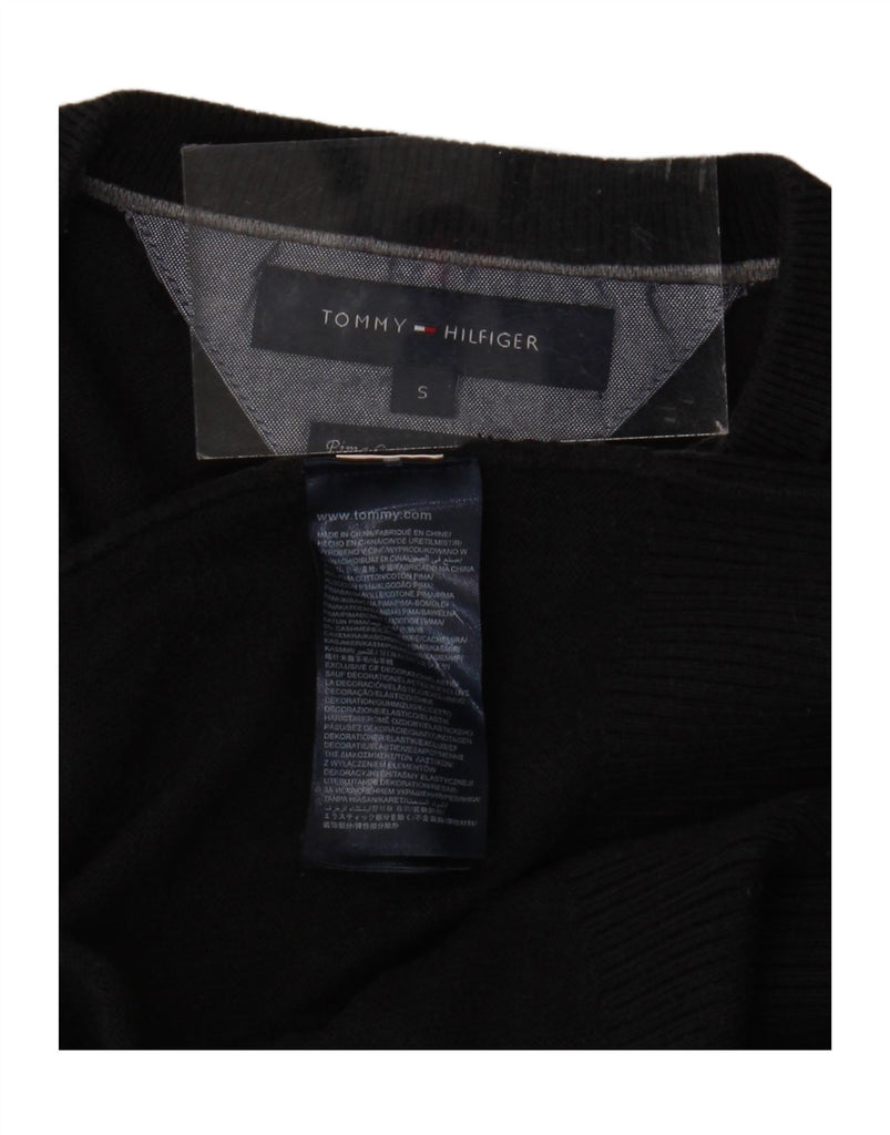 TOMMY HILFIGER Herren-Pullover mit V-Ausschnitt, Größe S, schwarze Baumwolle