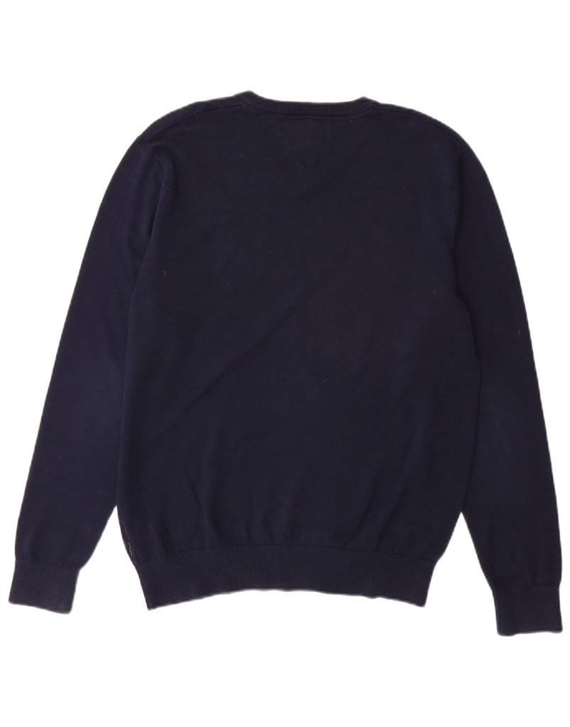 TOMMY HILFIGER Mens V-Neck Jumper Sweater Small Navy Blue Argyle/Diamond