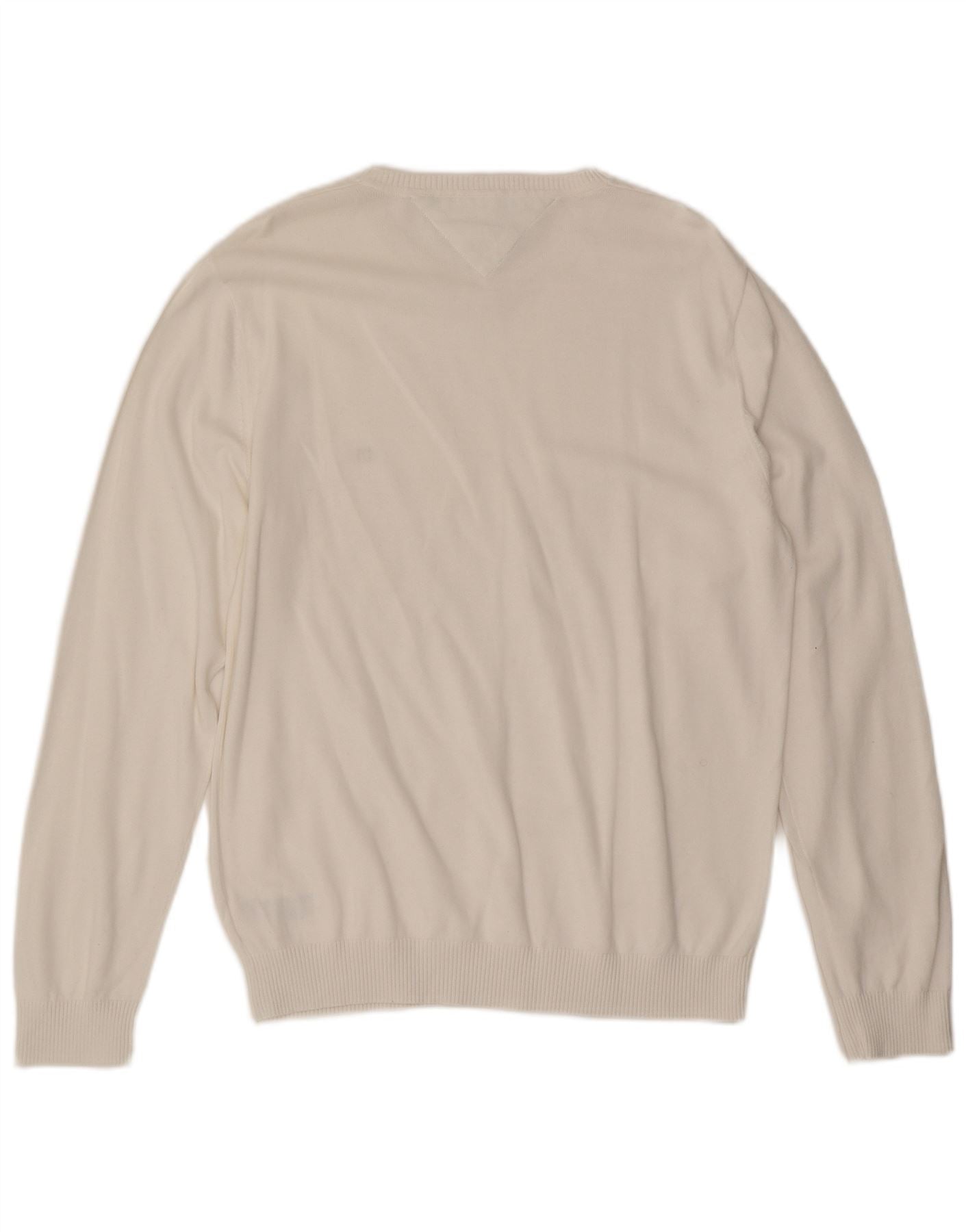 Tommy Hilfiger Herren-Pullover mit V-Ausschnitt, XL, weiß, Baumwolle, klassisch