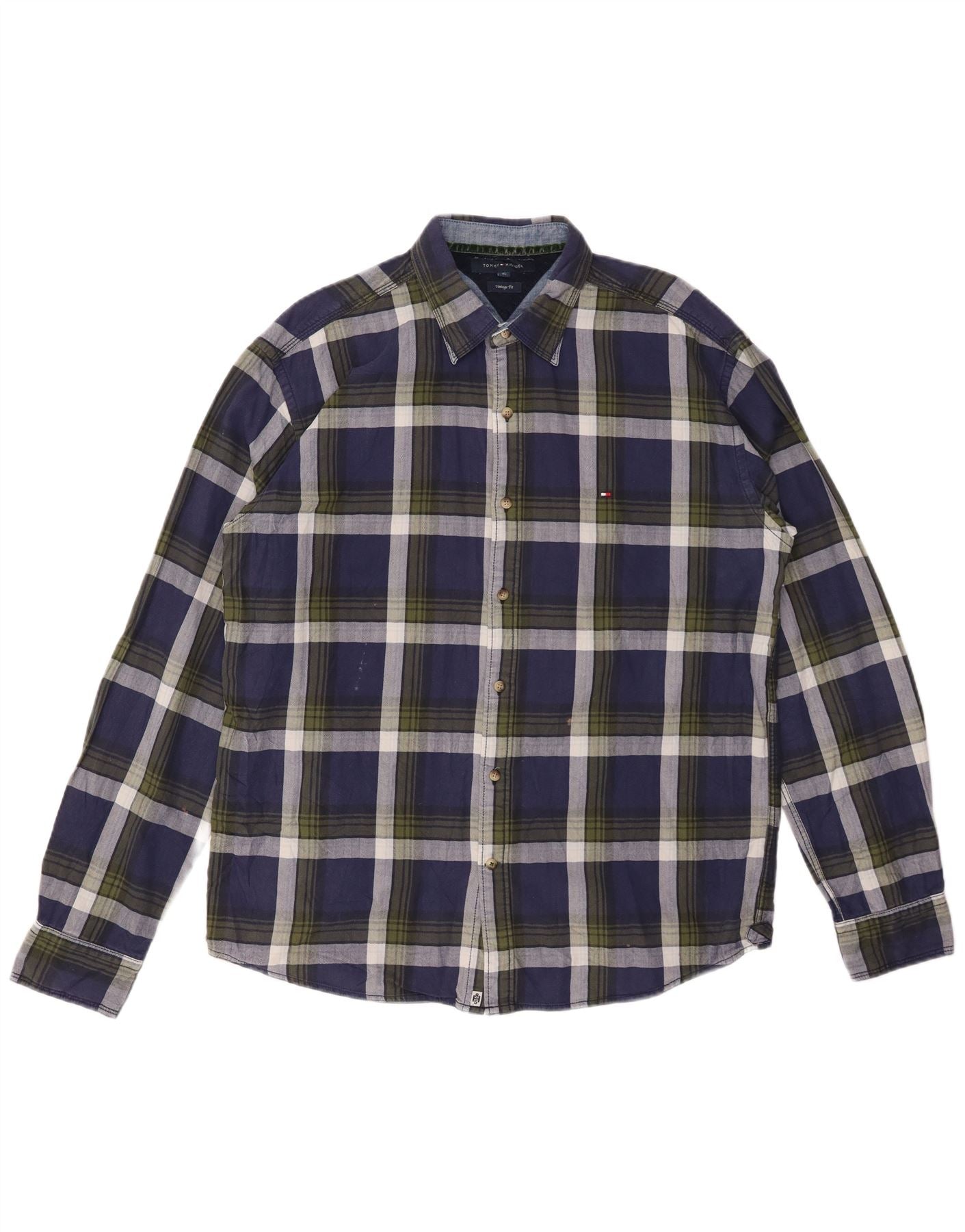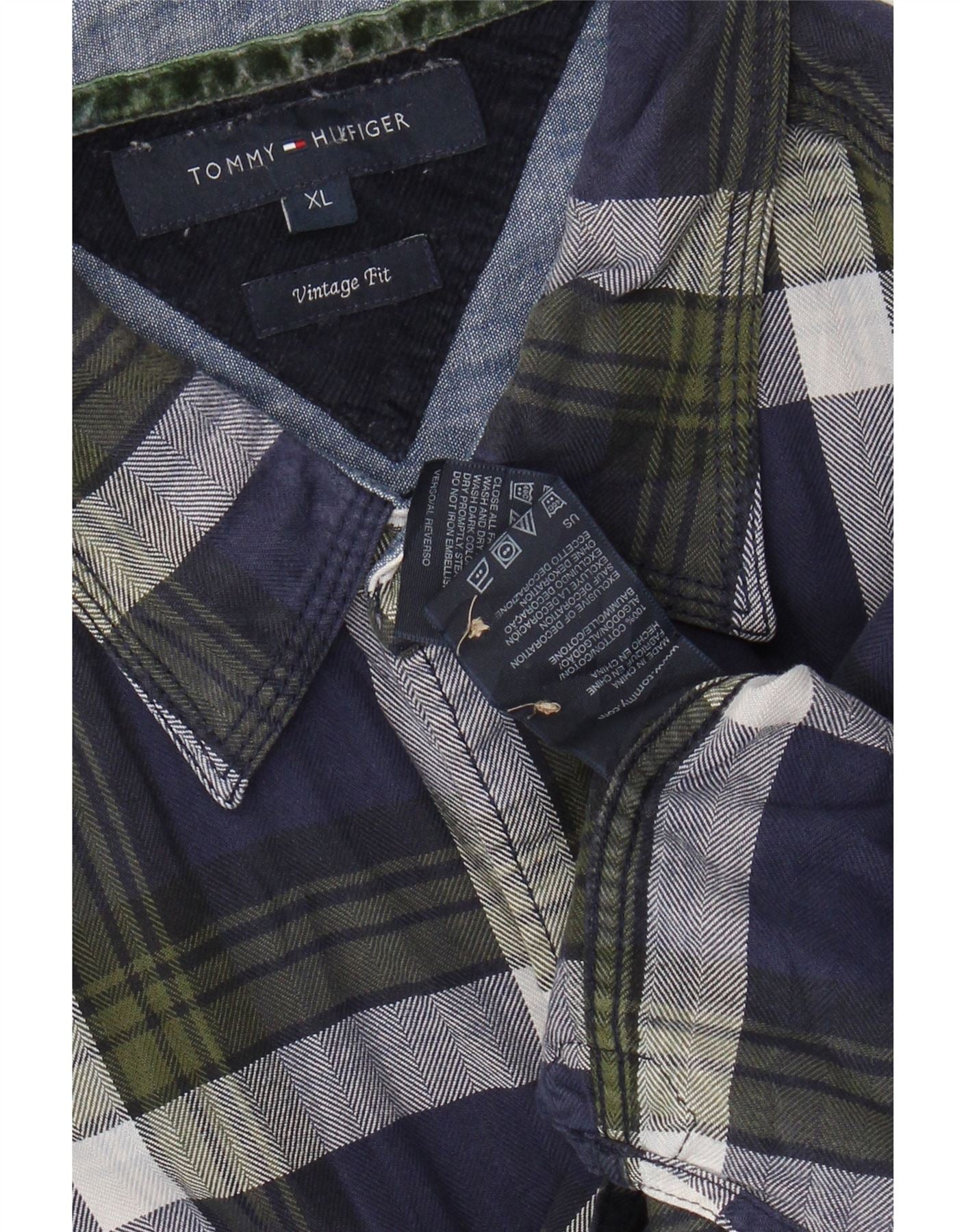 TOMMY HILFIGER Herren Vintage Fit Flanellhemd XL Marineblau kariert Baumwolle