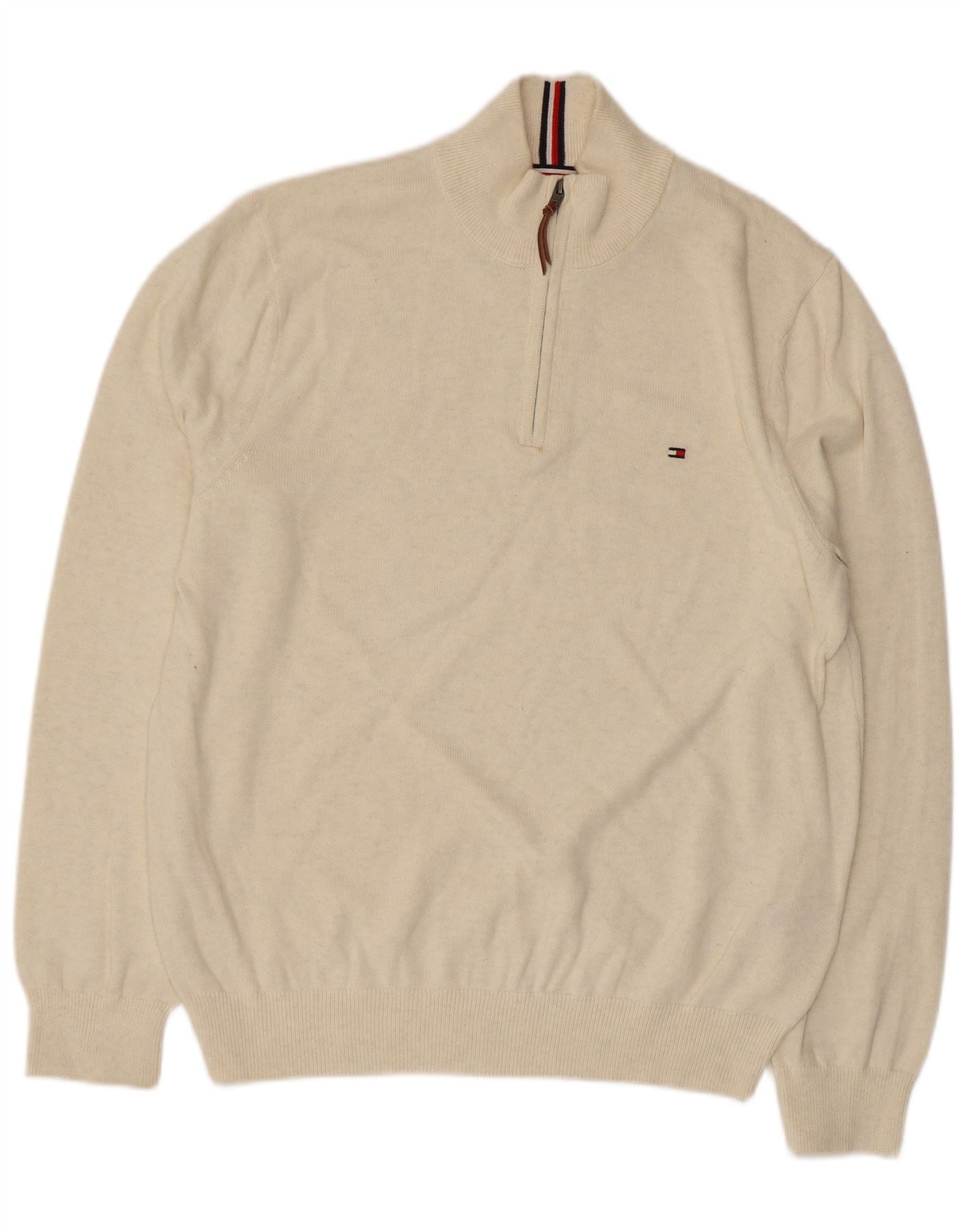 Home > Tommy Hilfiger > Herren > Pullover > TOMMY HILFIGER Herren-Pullover mit Reißverschluss am Hals, groß, aus weißer Baumwolle