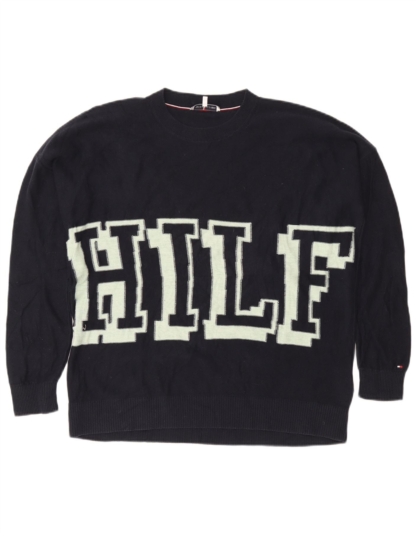 - KI-Beschreibung: Dieser Damen-Pullover mit Rundhalsausschnitt von Tommy Hilfiger ist aus weichem, marineblauem Baumwollstrick gefertigt. Es verfügt über eine entspannte, übergroße Passform für ultimativen Komfort. Der klassische Rundhalsausschnitt und die langen Ärmel sorgen für eine zeitlose Silhouette. Ein auffälliges grafisches HILFIGER-Logo erstreckt sich über die Vorder- und Rückseite und setzt ein unverwechselbares Markenstatement. Dieser Pulloverstil bietet einen mühelosen, lässigen Reiz.