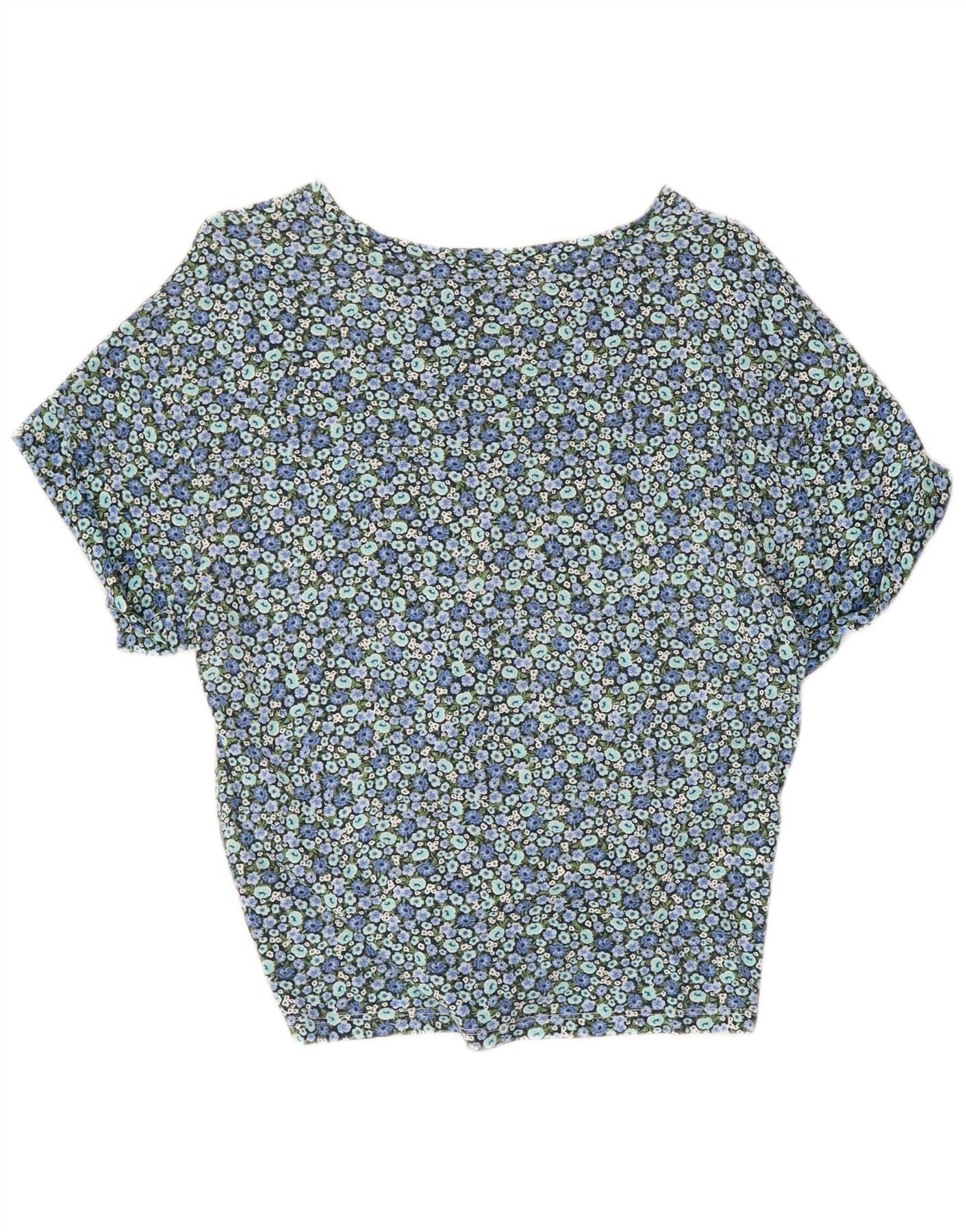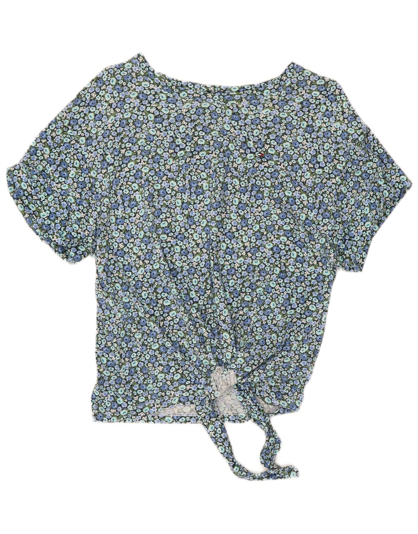 TOMMY HILFIGER Damen Crop Bluse Top UK 10 Small Blue Floral Cotton