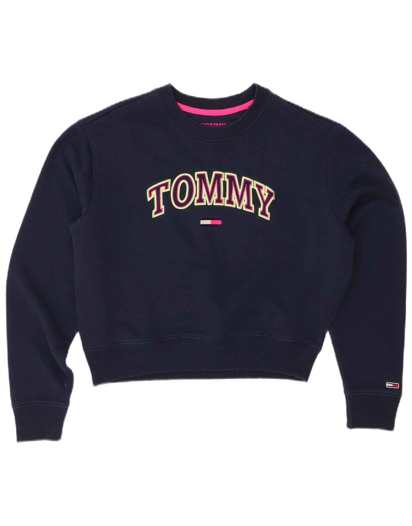 TOMMY HILFIGER Damen Crop Sweatshirt Pullover UK 10 Small Marineblau