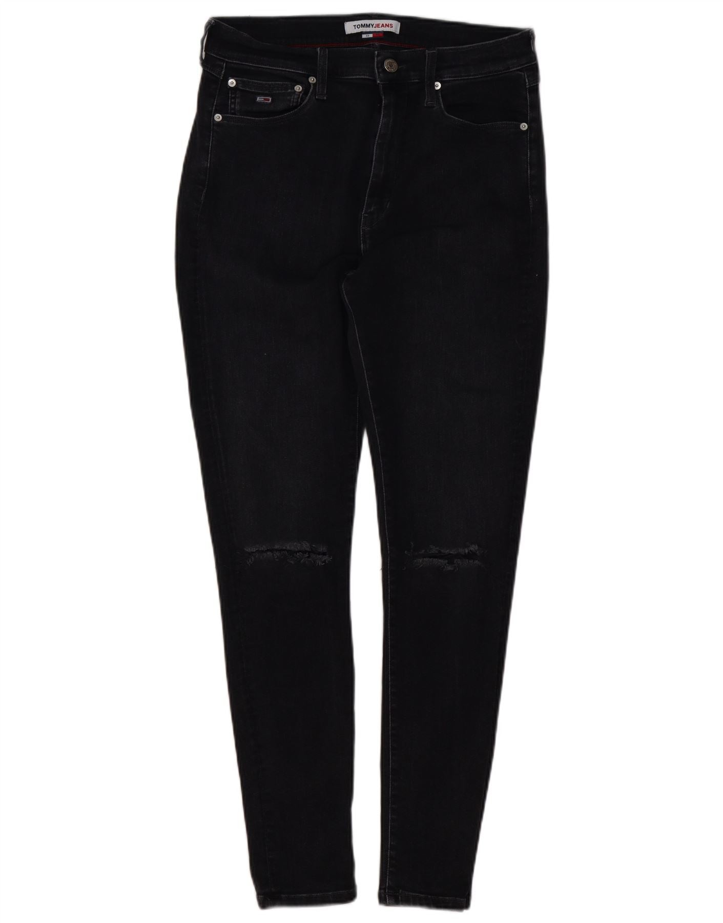 TOMMY HILFIGER Damen Distressed Skinny Jeans W33 L30 Schwarz