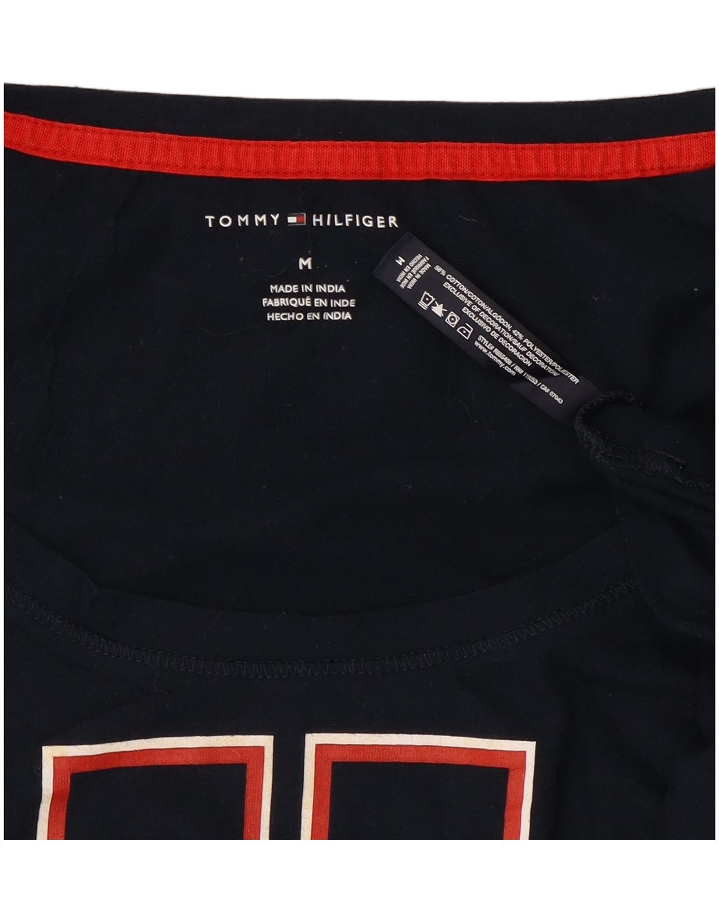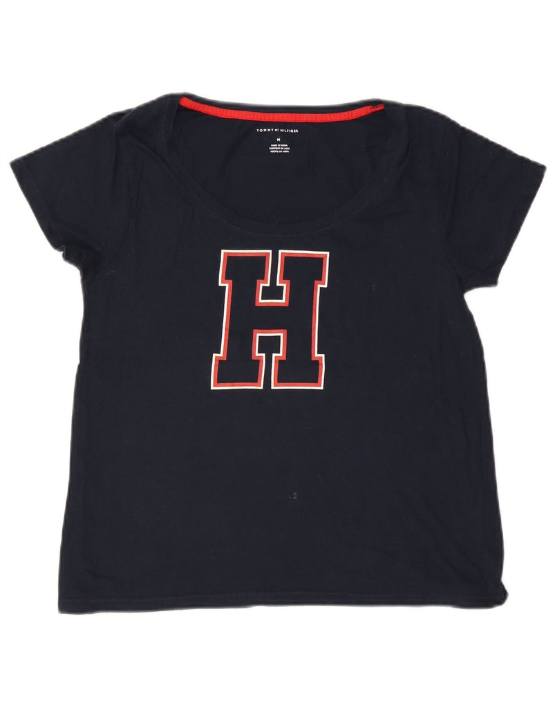 TOMMY HILFIGER Womens Graphic T-Shirt Top UK 14 Medium Navy Blue Cotton