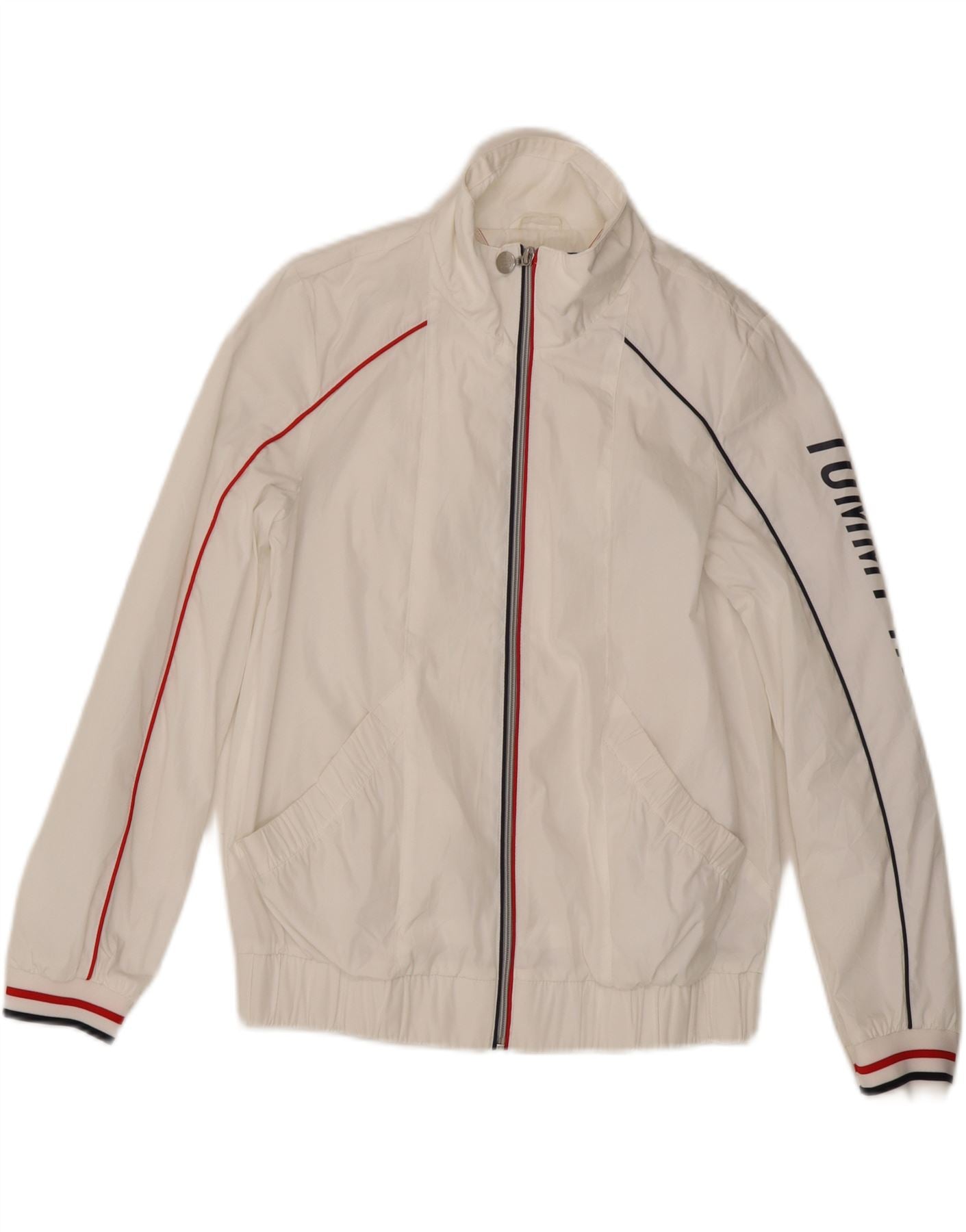 TOMMY HILFIGER Damen Grafik-Trainingsanzug-Oberteiljacke UK 10 Small Weiß