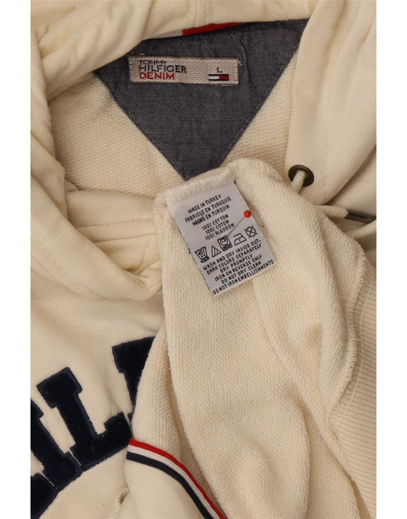 TOMMY HILFIGER Womens Graphic Zip Hoodie Sweater UK 14 Large White Cotton