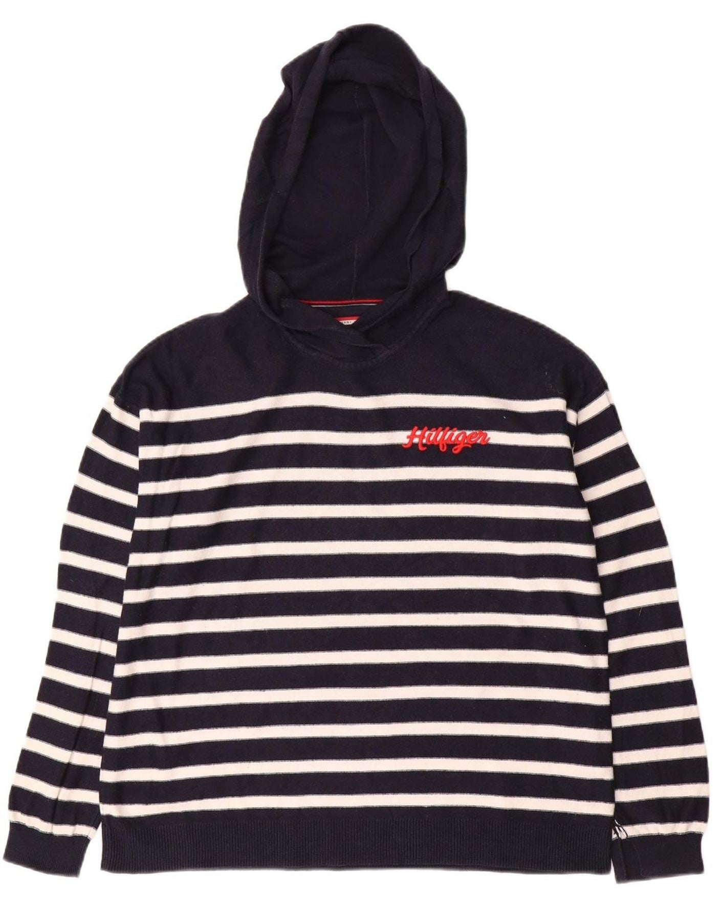 TOMMY HILFIGER Damen Kapuzenpullover Pullover UK 14 Mittel Marineblau gestreift