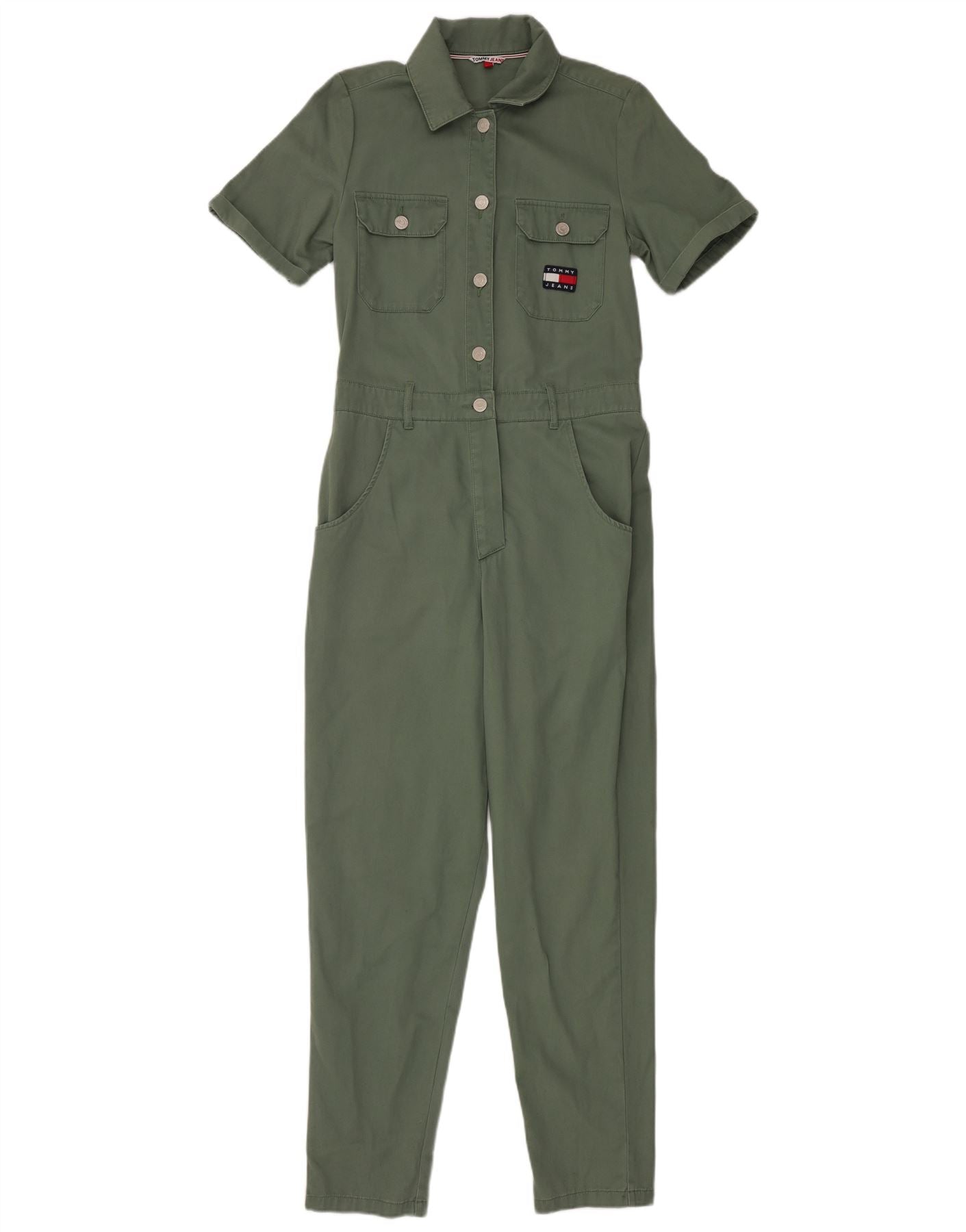 TOMMY HILFIGER Womens Loose Fit Jumpsuit UK 6 XS Green Cotton