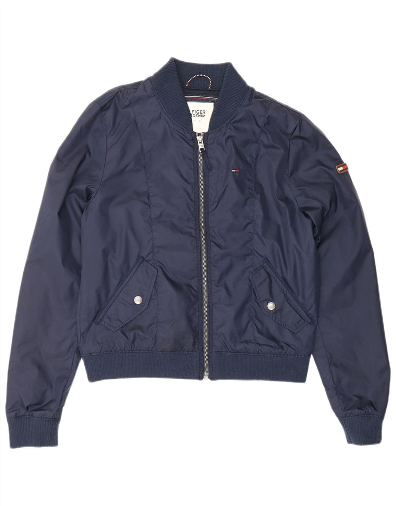 TOMMY HILFIGER Womens Oversized Bomber Jacket UK 6 XS Navy Blue Nylon