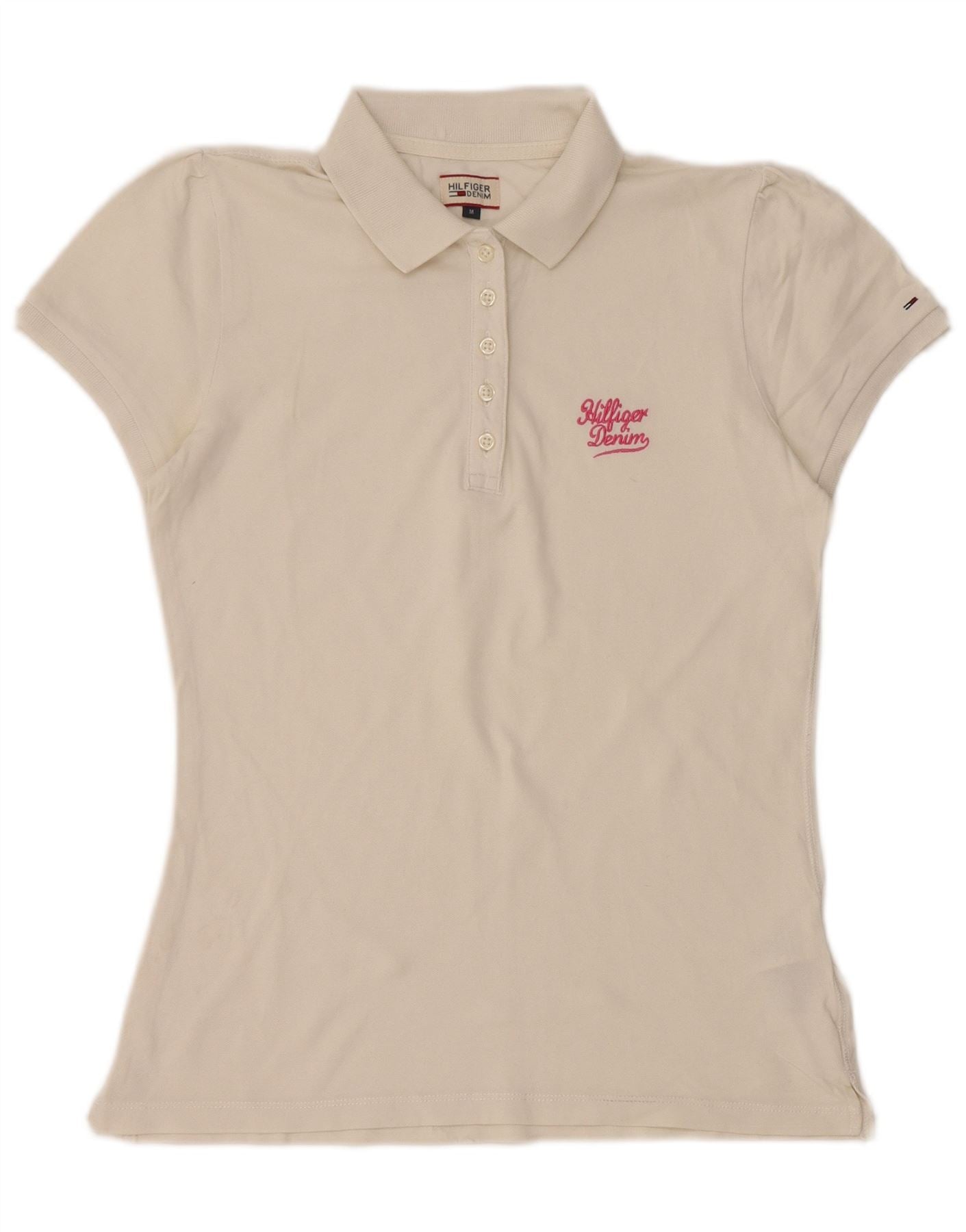 TOMMY HILFIGER Damen Poloshirt UK 12 Mittelweiße Baumwolle