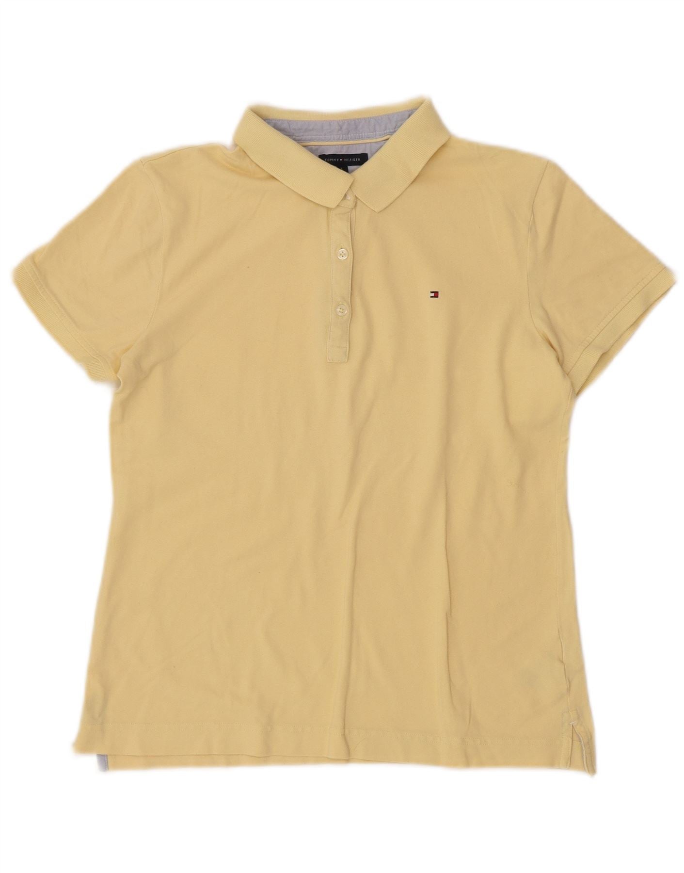 TOMMY HILFIGER Damen Poloshirt UK 14 Große gelbe Baumwolle