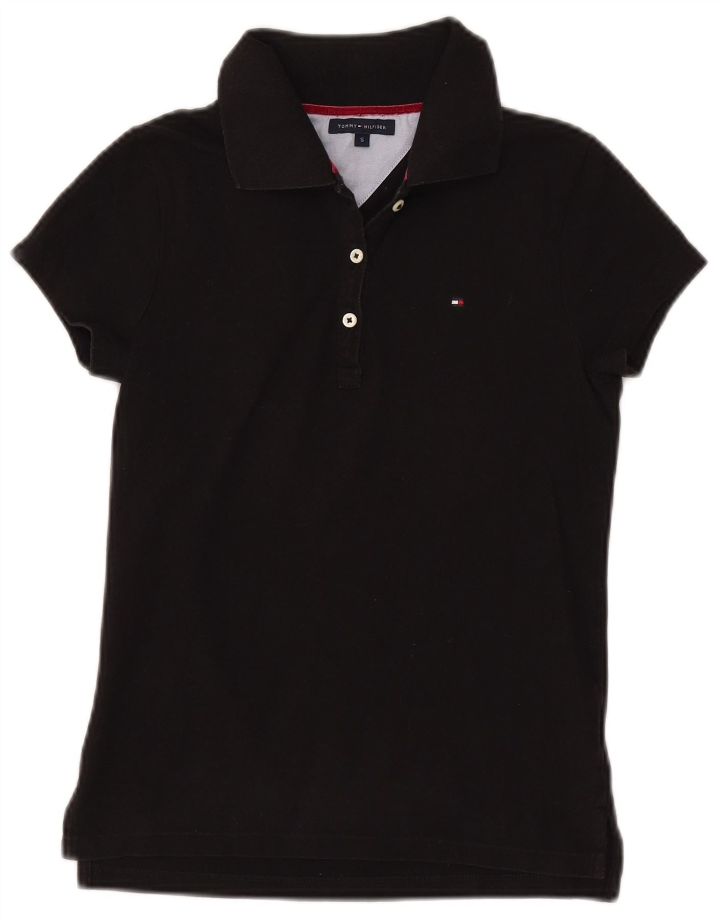 TOMMY HILFIGER Damen Poloshirt UK 8 Small Schwarz Baumwolle