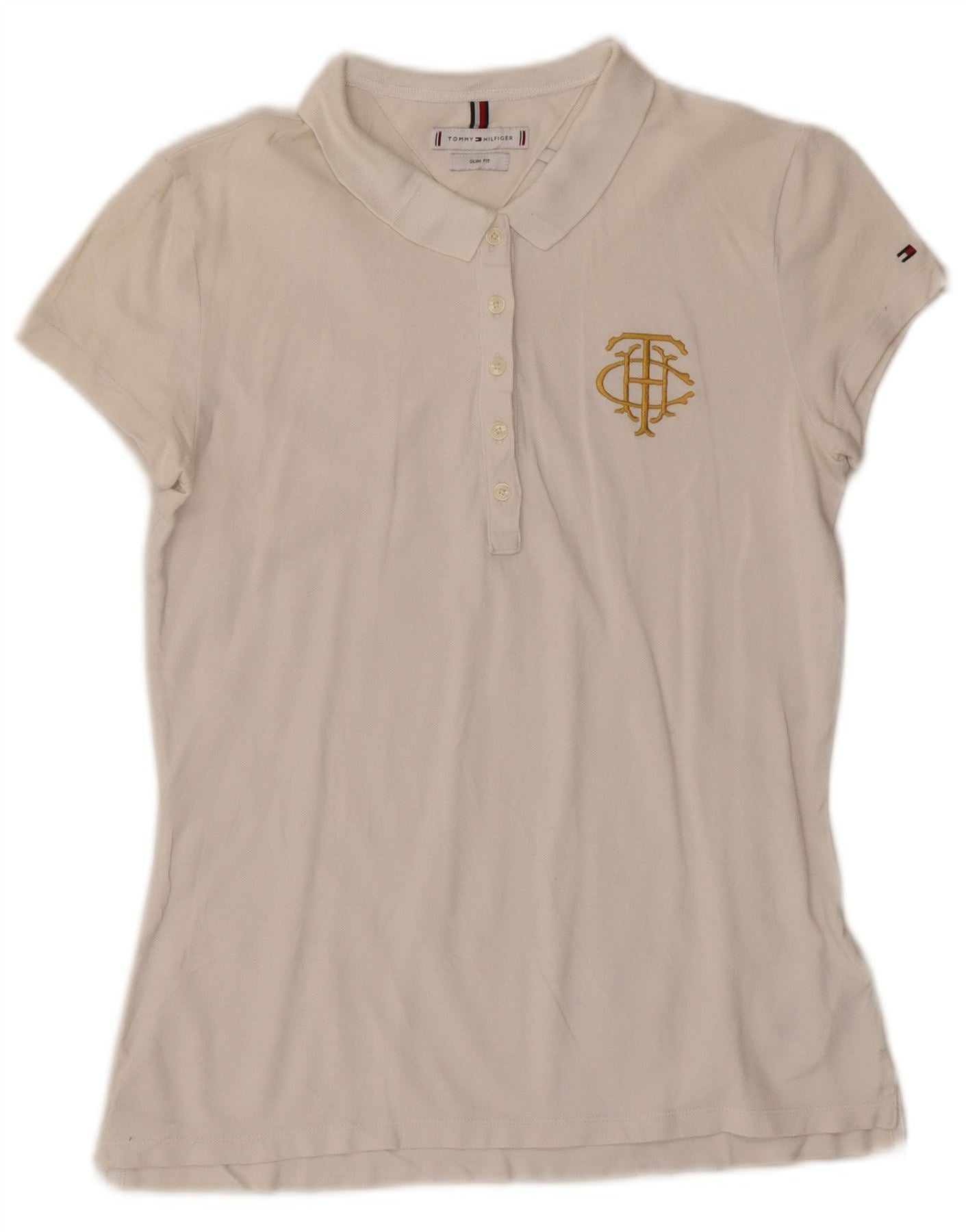 Tommy Hilfiger Damen Slim Fit Poloshirt UK 12 Mittelweiße Baumwolle