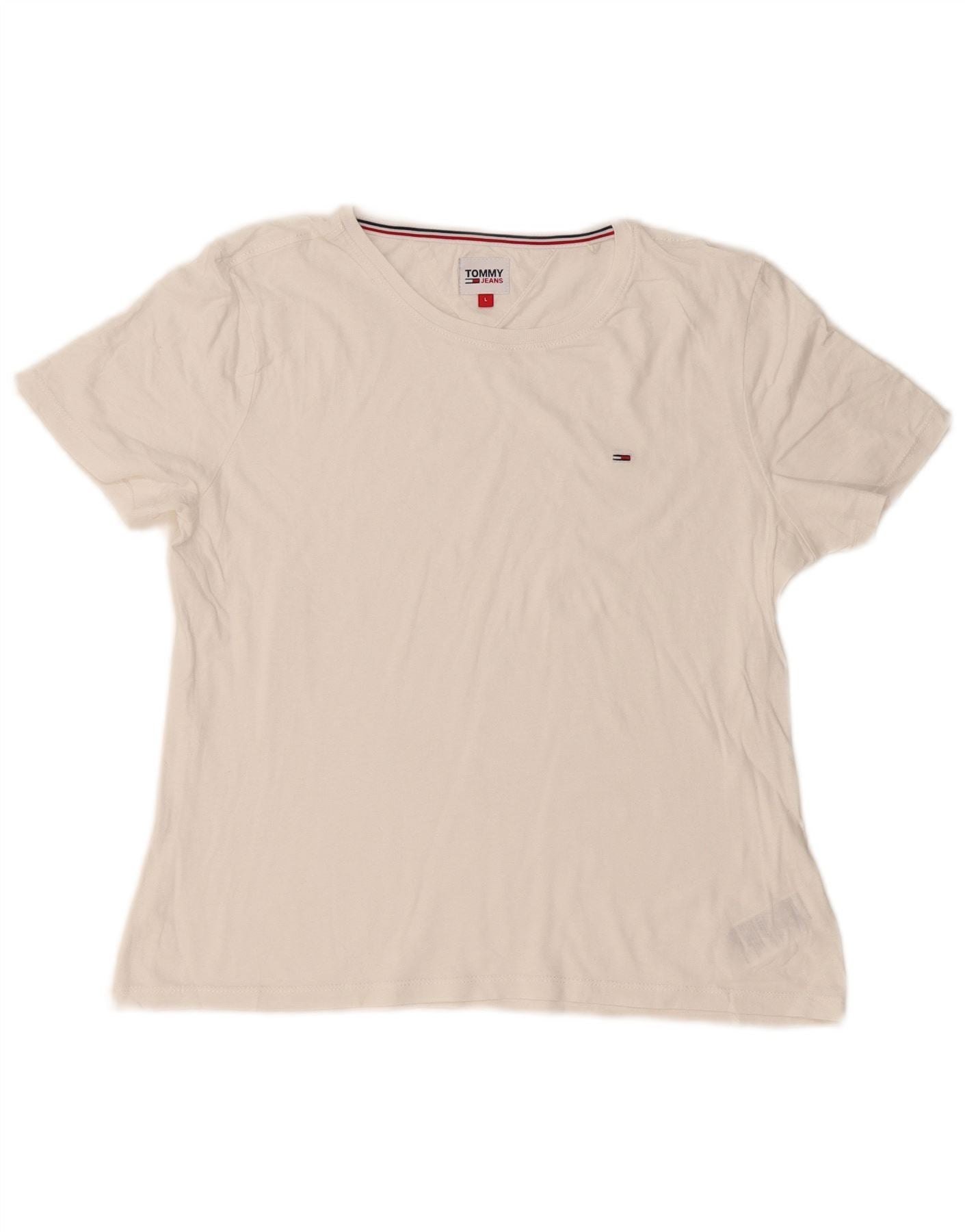 TOMMY HILFIGER Damen T-Shirt Top UK 14 Large Weiße Baumwolle