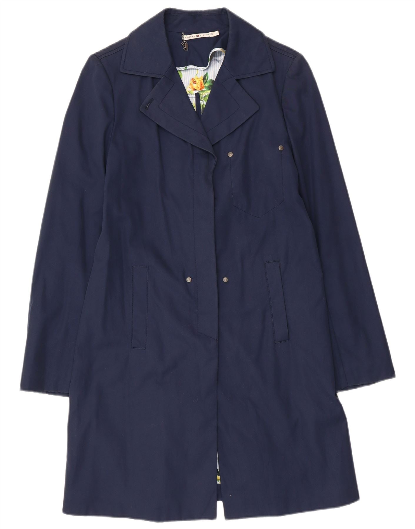 TOMMY HILFIGER Womens Trench Coat UK 12 Medium Navy Blue Cotton
