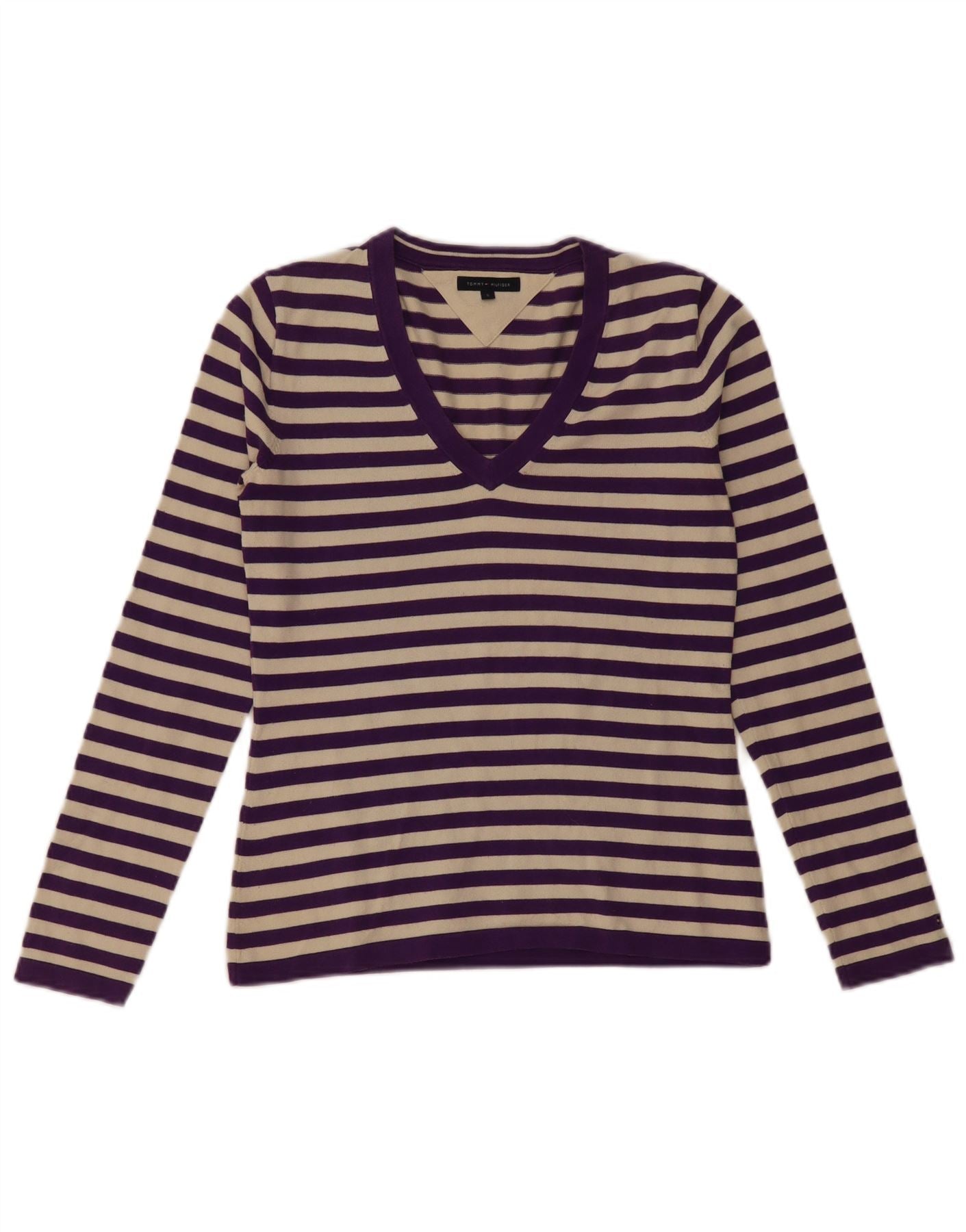Home > Damen > Depop-Kleidung > TOMMY HILFIGER Damen-Pullover mit V-Ausschnitt, Gr. 10, klein, lila gestreift