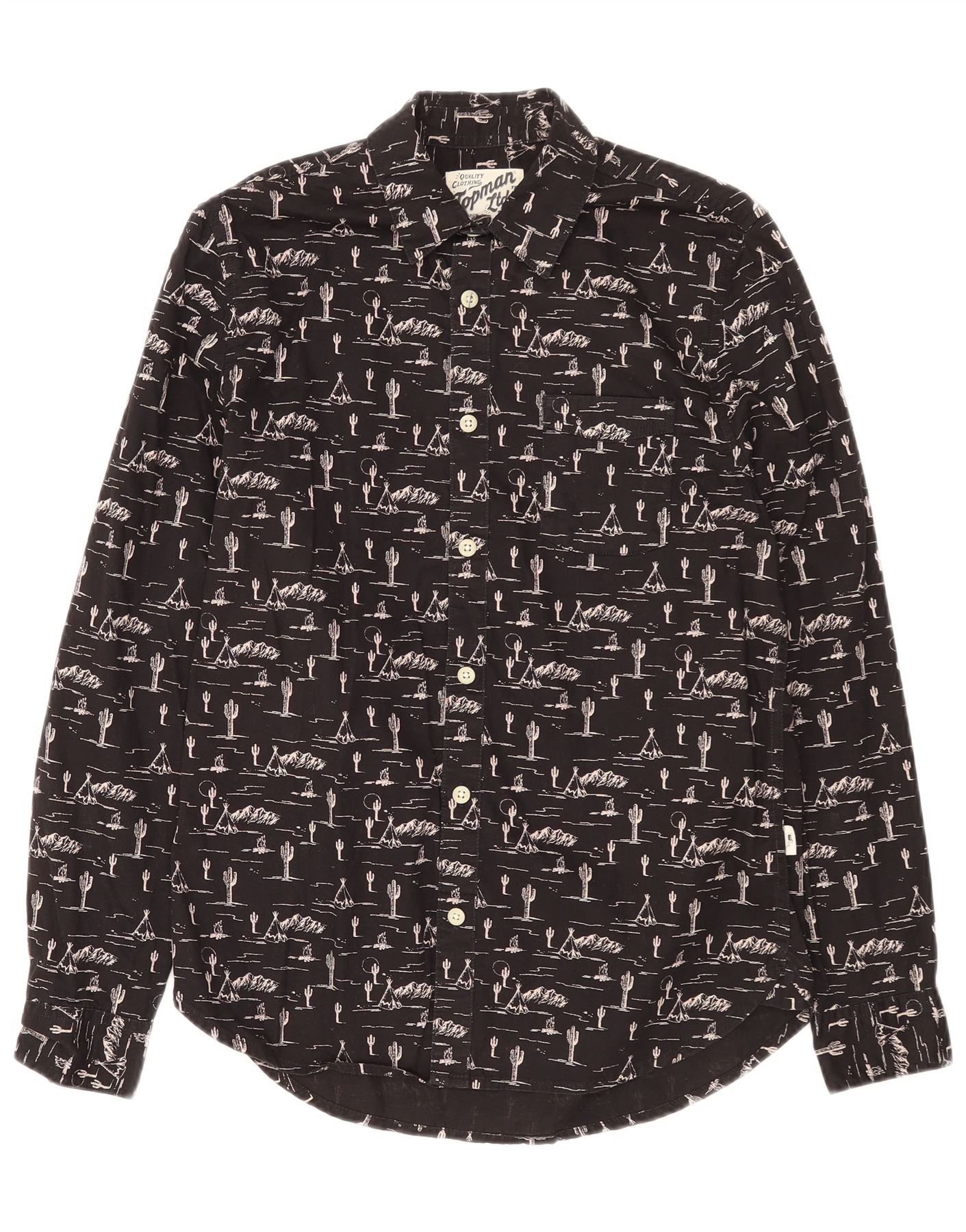 TOPMAN Herren-Hemd mit abstraktem Muster, klein, aus schwarzer Baumwolle