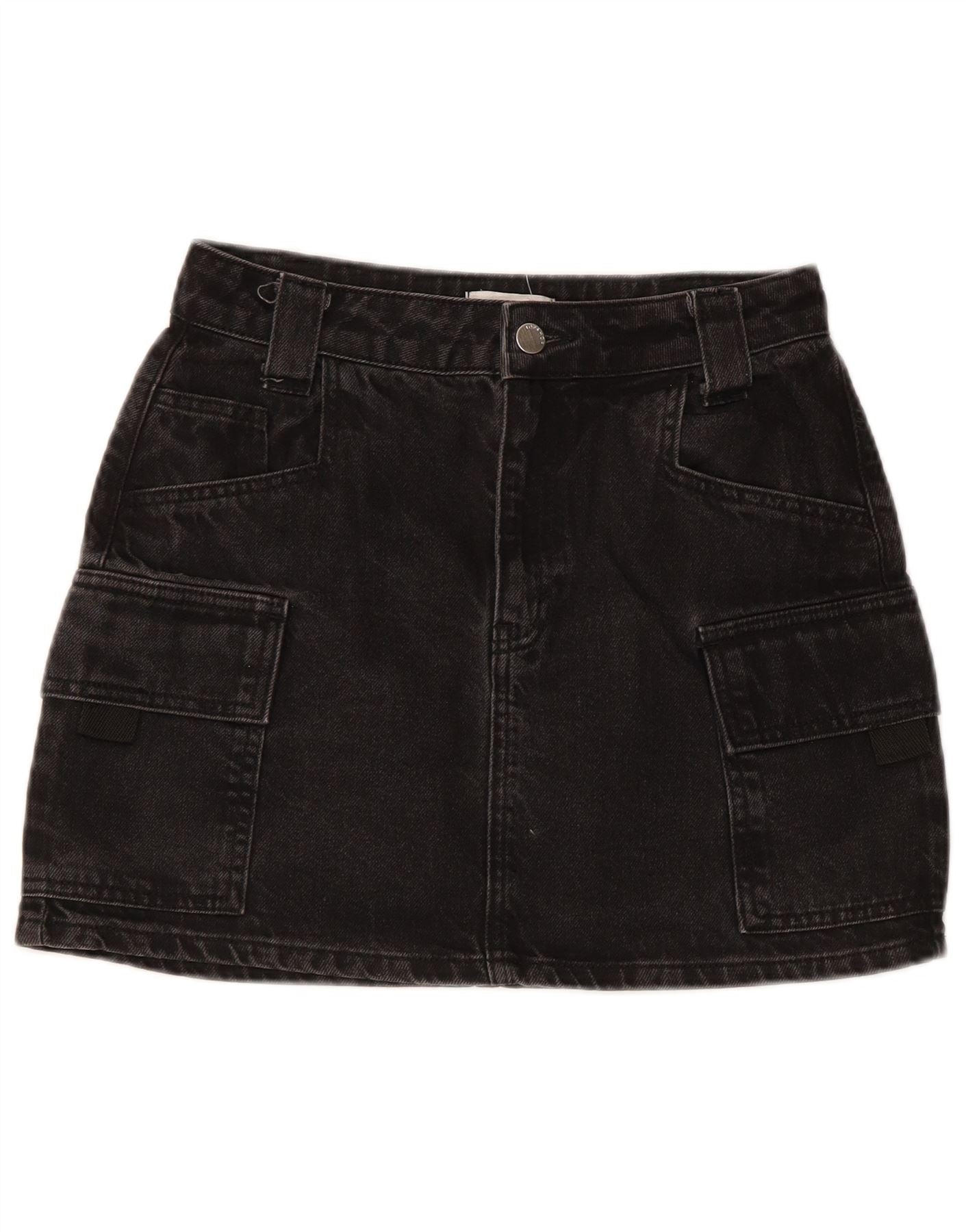 TOPSHOP Damen Denim Mini Cargo Rock UK 8 Small W26 Schwarz Baumwolle