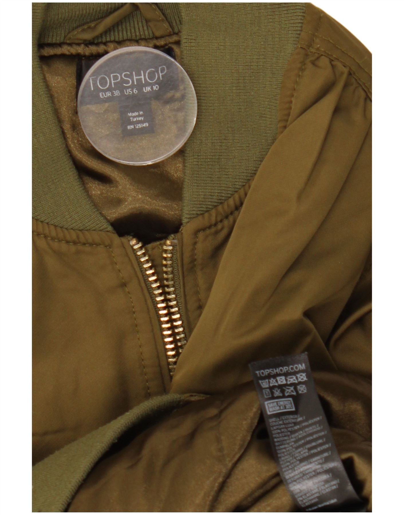 TOPSHOP Damen Übergroße Bomberjacke UK 10 Small Khaki Polyester