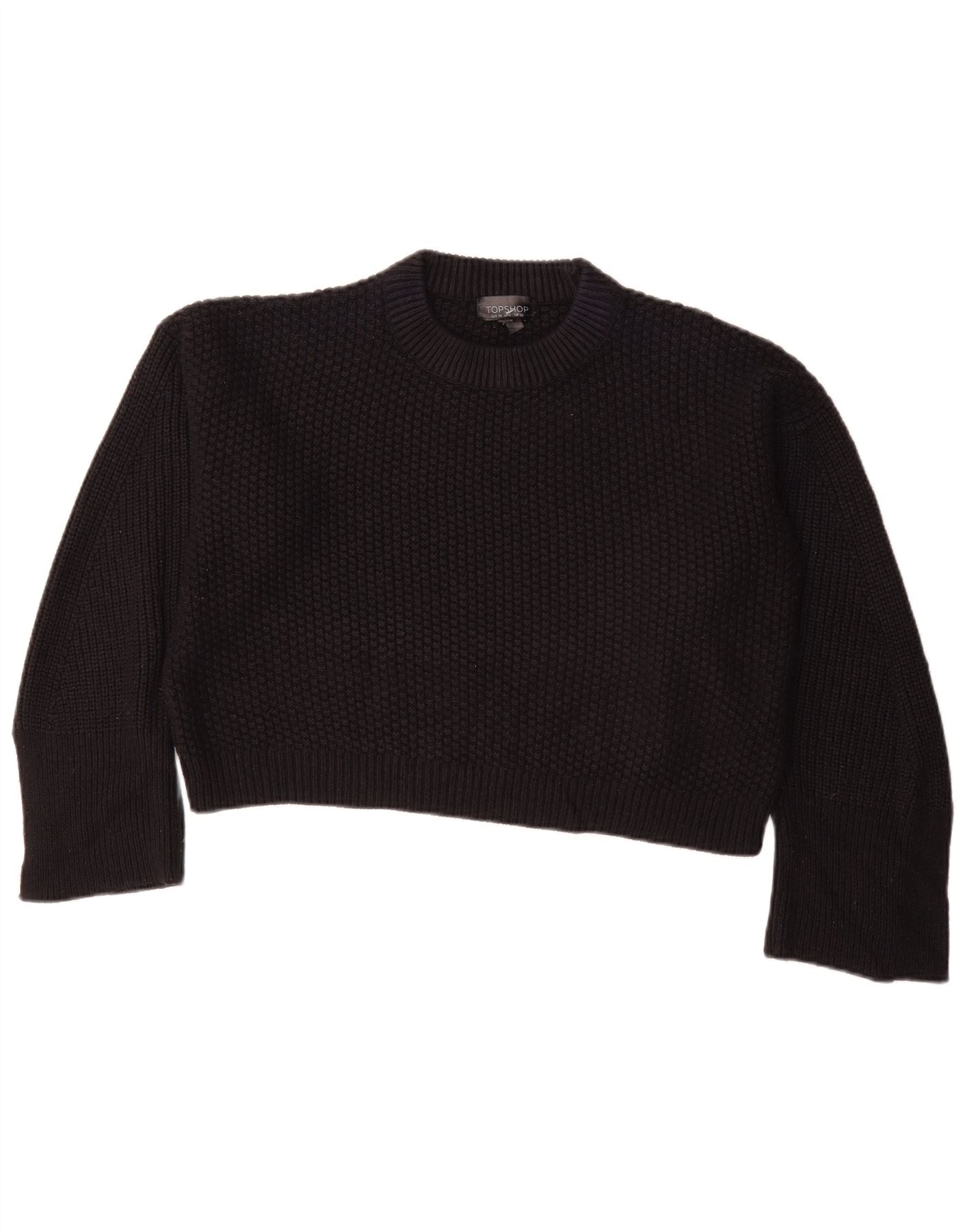 TOPSHOP Womens Oversized Crop Crew Neck Jumper Sweater UK 10 Small Black
