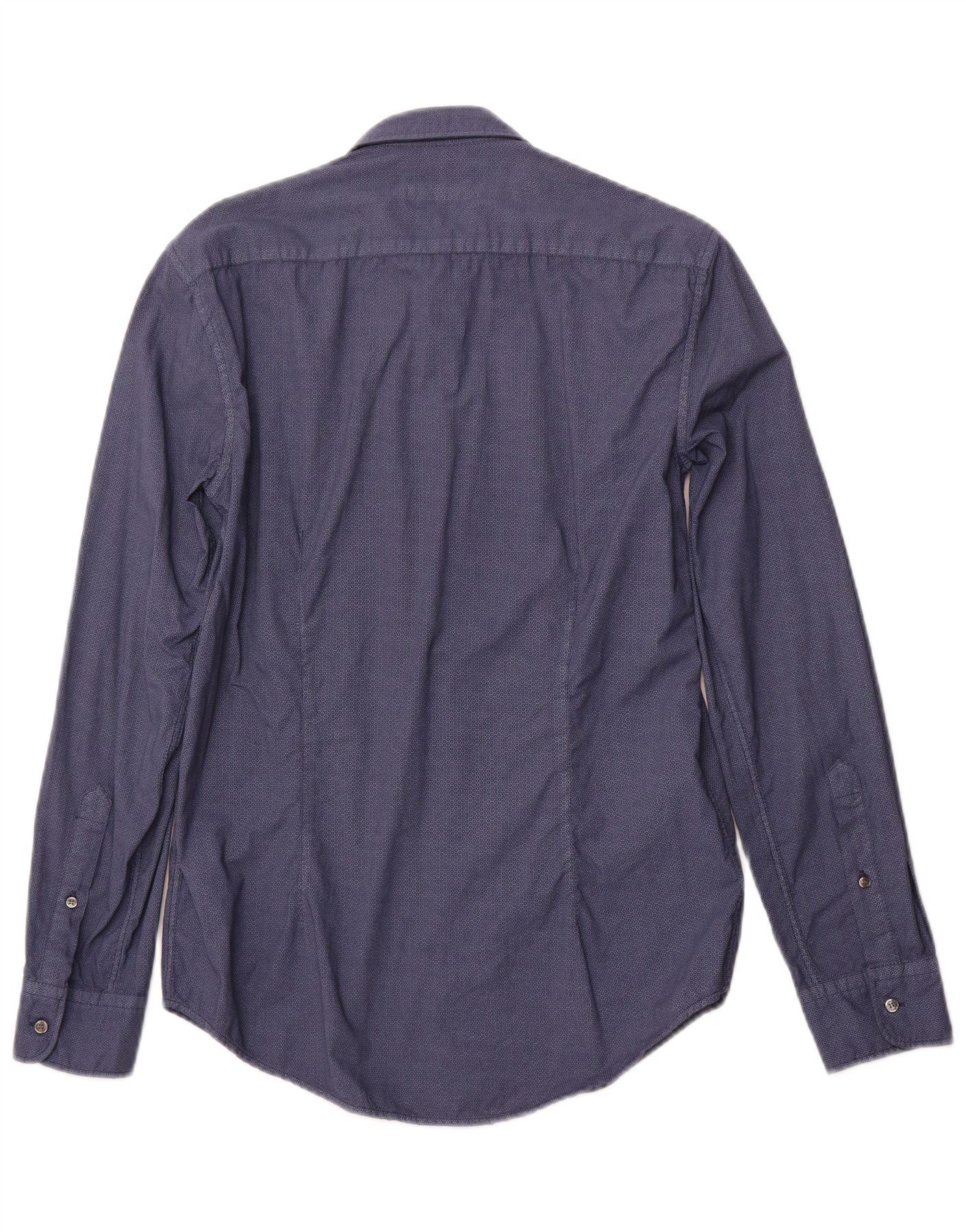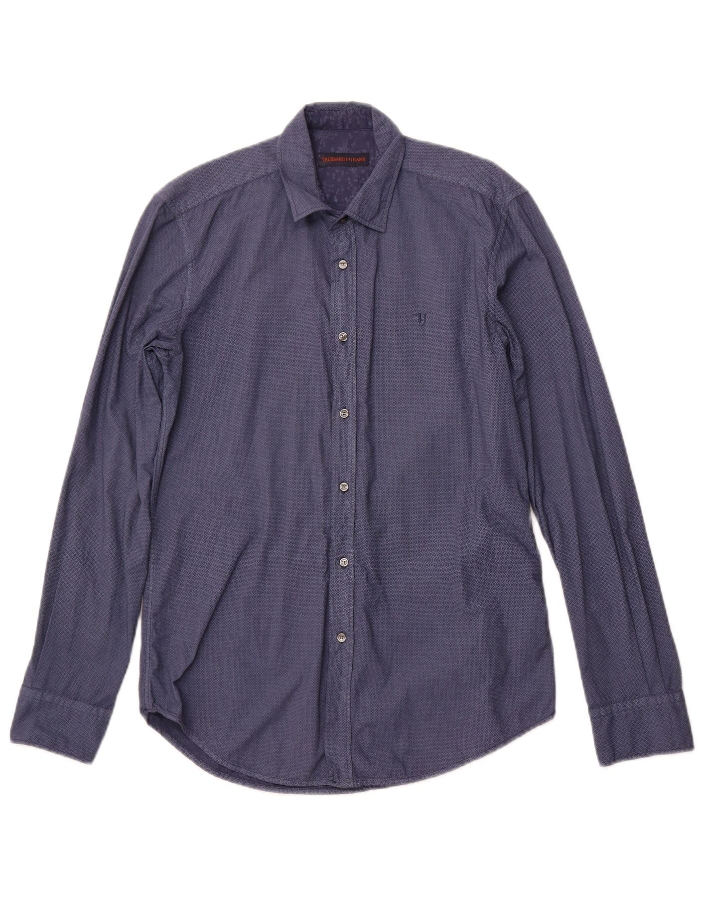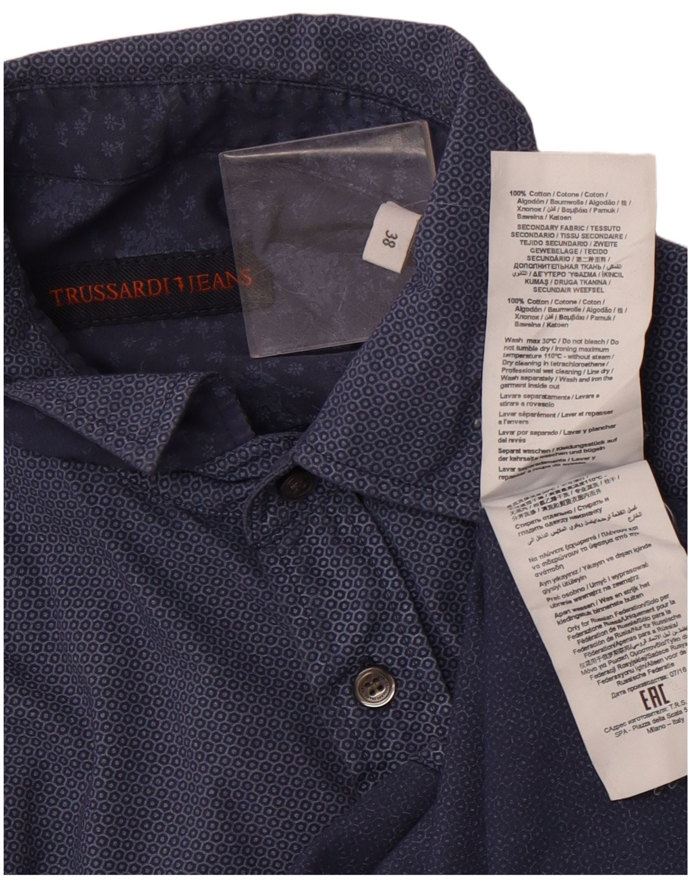 TRUSSARDI JEANS Herrenhemd Größe 38 Mittelmarineblaue geometrische Baumwolle