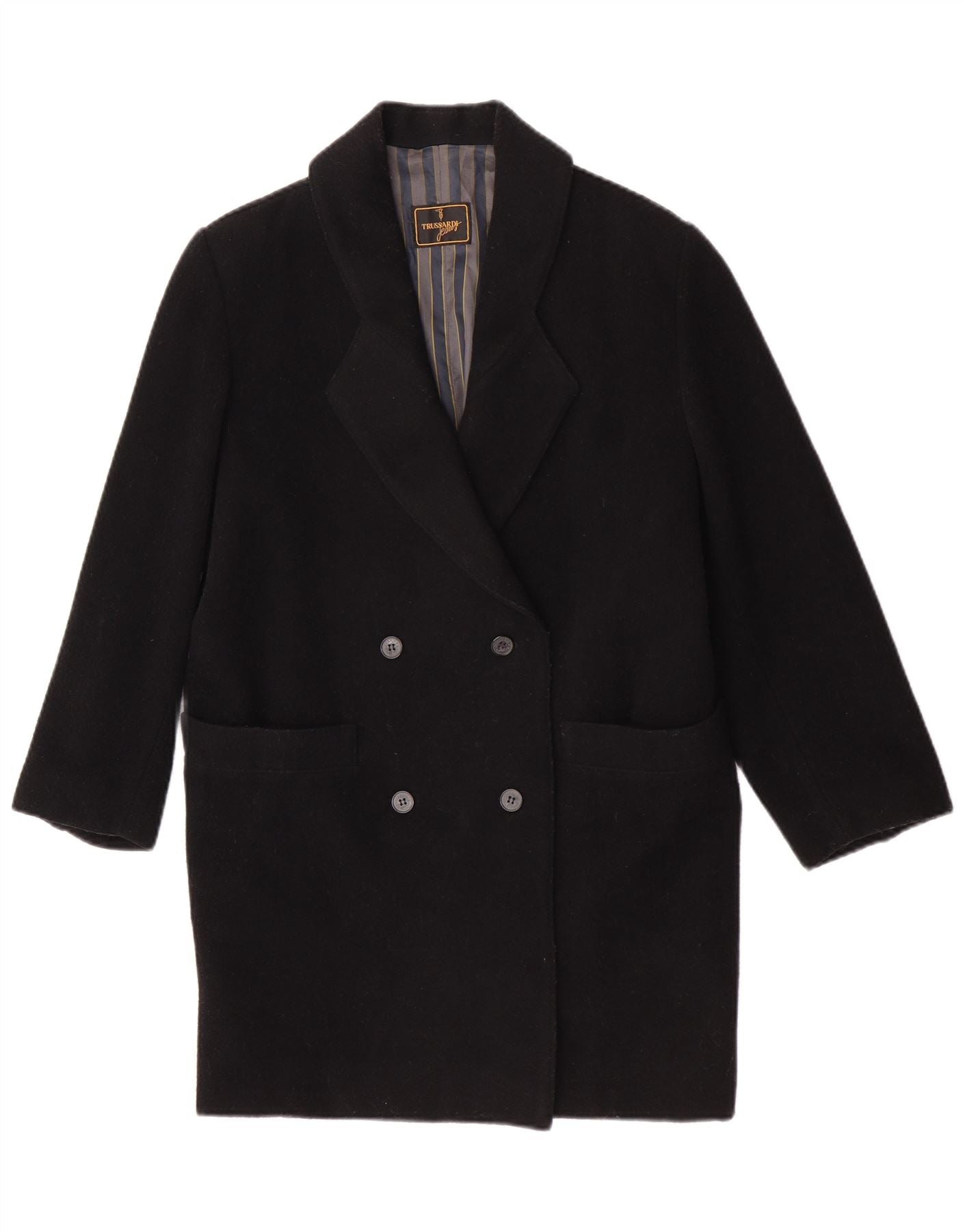 Trussardi Jeans Damen Zweireihiger Mantel IT 42 Mittelschwarze Schurwolle