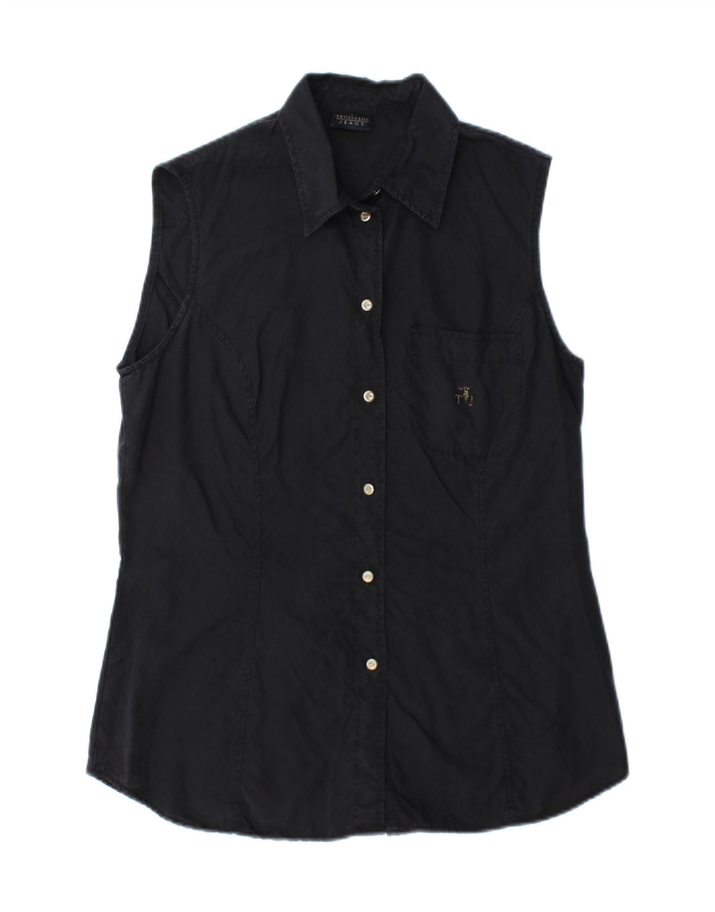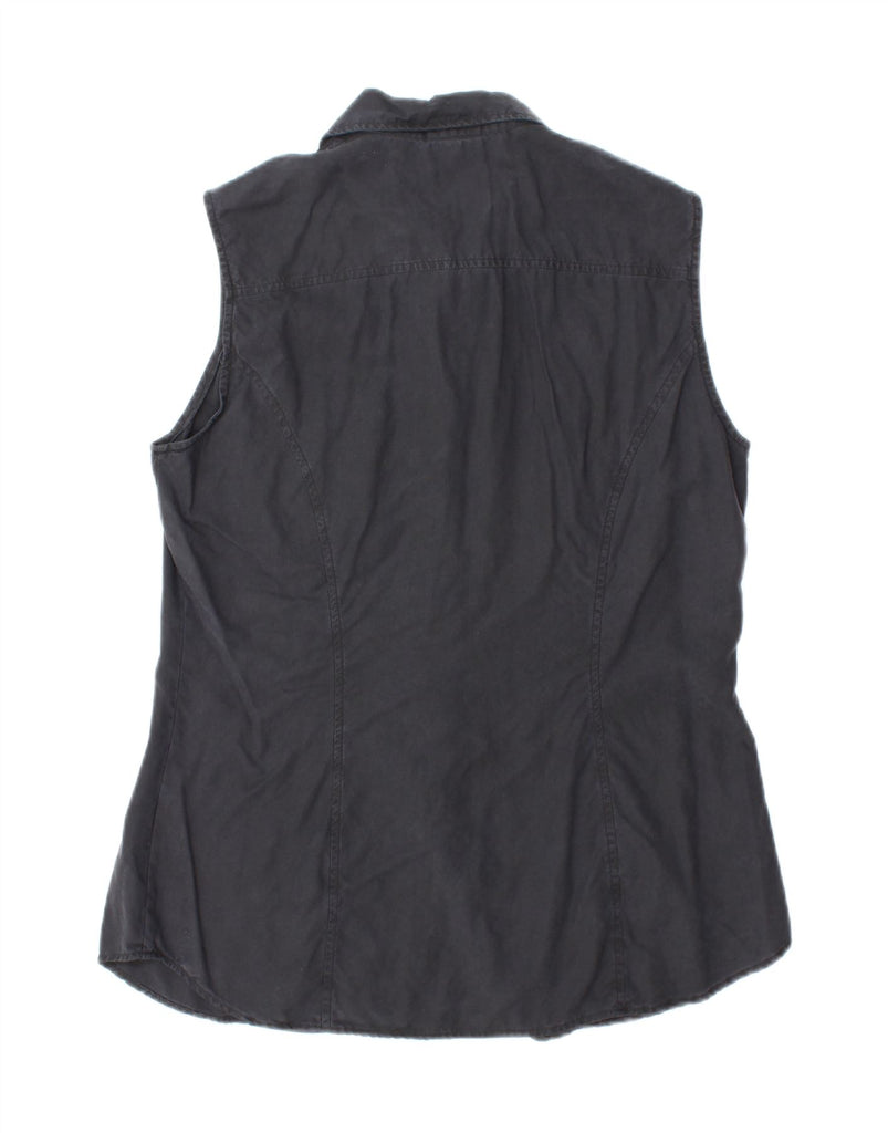 TRUSSARDI JEANS Damen ärmelloses Hemd UK 14 Large Marineblau Lyocell