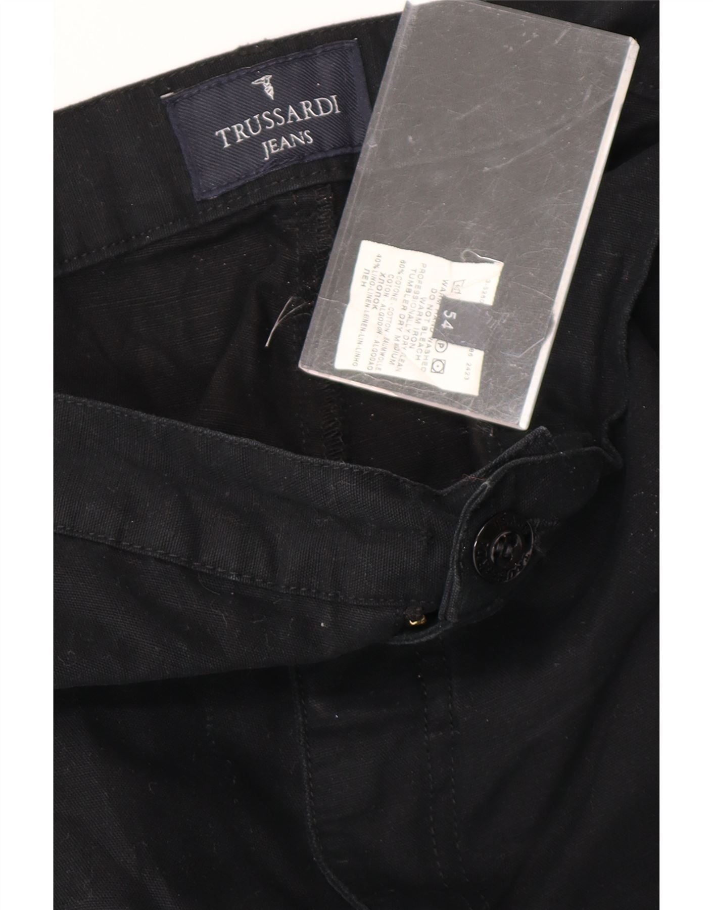 TRUSSARDI Mens Cargo Capri Trousers IT 54 2XL W37 L23 Black Cotton