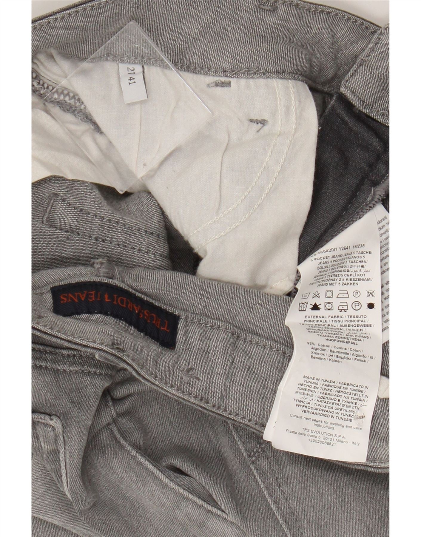 TRUSSARDI Damen Straight Jeans W27 L25 Graue Baumwolle